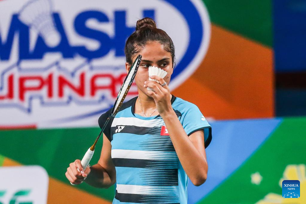 Saloni Samirbhai Mehta of China's Hong Kong competes during the women's singles qualifying round match against Siti Nurshuhaini of Malaysia at the Badminton Asia Championships 2022 in Manila, the Philippines on April 26, 2022. (Xinhua/Rouelle Umali)