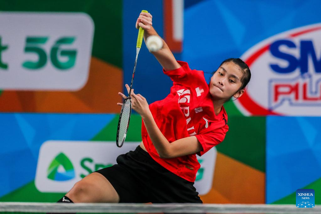 Stephanie Widjaja of Indonesia competes during the women's singles qualifying round match against Janelle Anne Andres of the Philippines at the Badminton Asia Championships 2022 in Manila, the Philippines on April 26, 2022. (Xinhua/Rouelle Umali)
