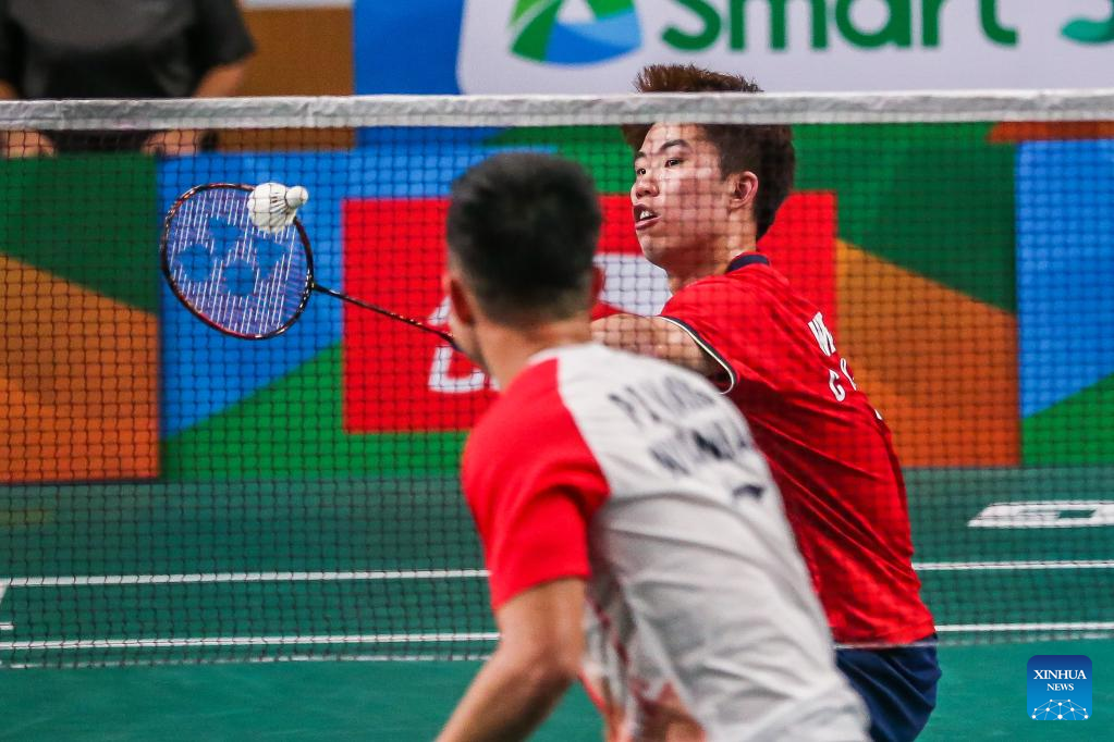 Jewel Angelo Albo of the Philippines competes during the men's singles qualifying round match against Lei Lanxi of China at the Badminton Asia Championships 2022 in Manila, the Philippines on April 26, 2022. (Xinhua/Rouelle Umali)