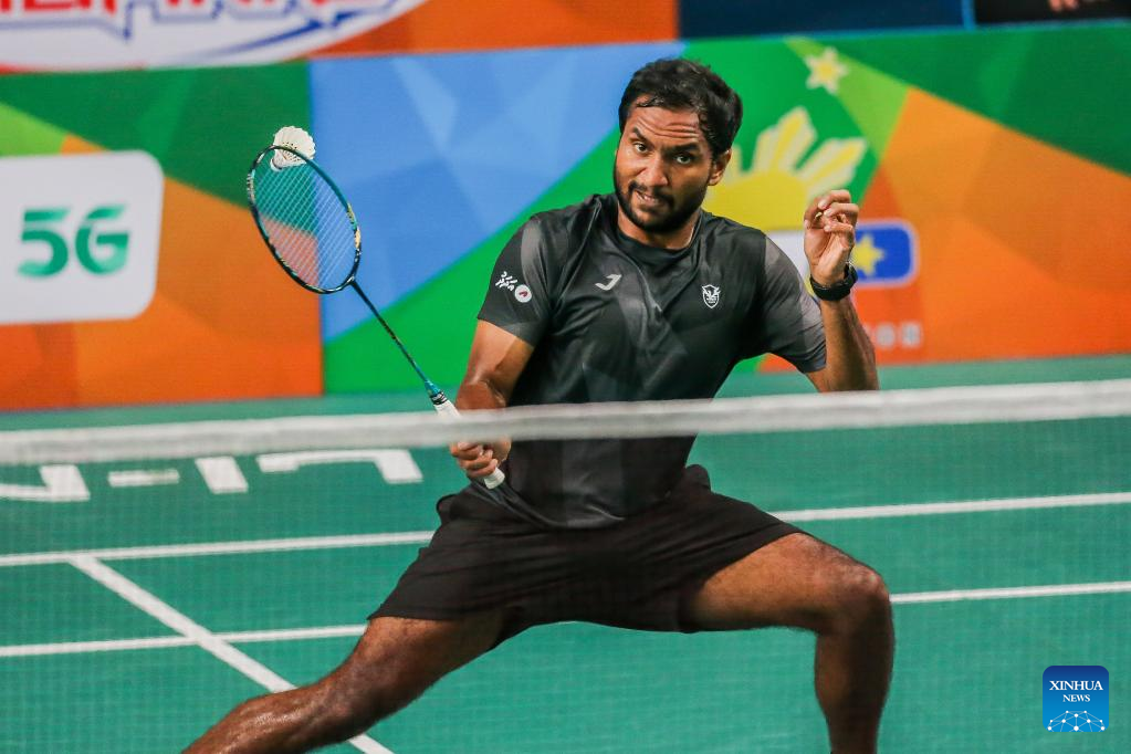 Hussein Zayan Shaheed of Maldives competes during the men's singles qualifying round match against Weng Hongyang of China at the Badminton Asia Championships 2022 in Manila, the Philippines on April 26, 2022. (Xinhua/Rouelle Umali)