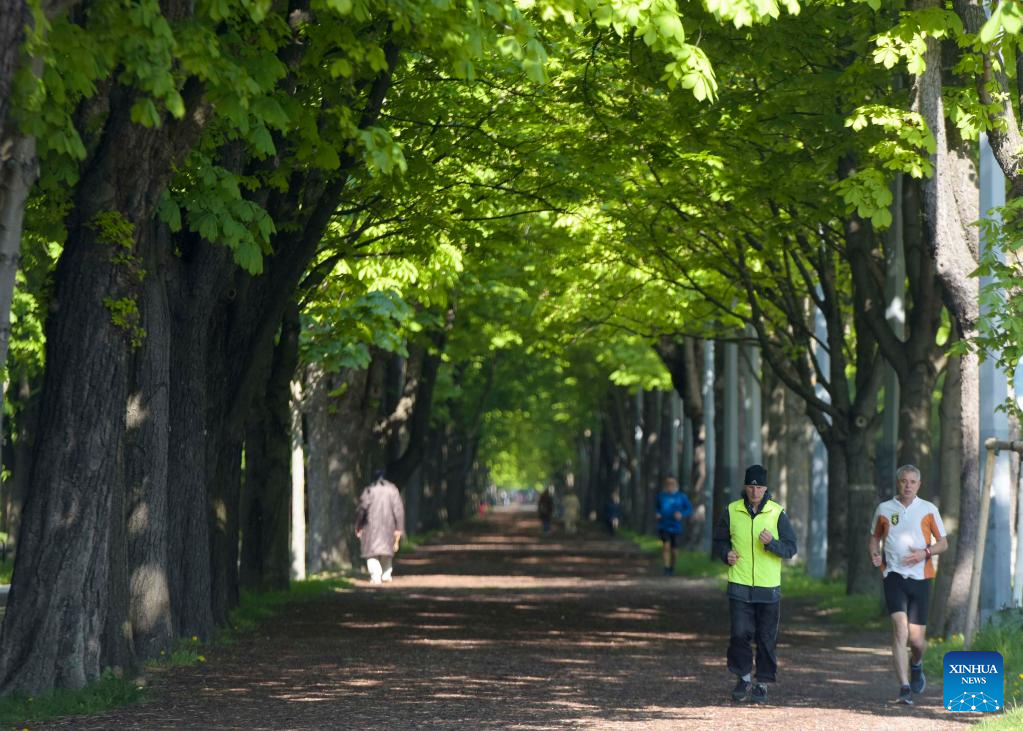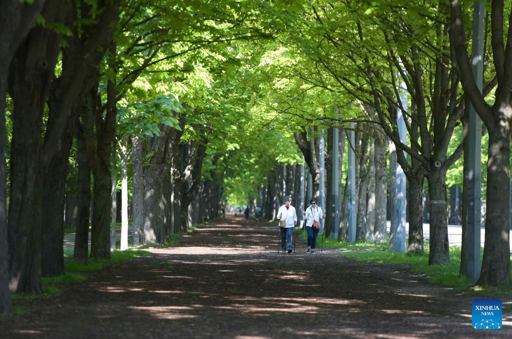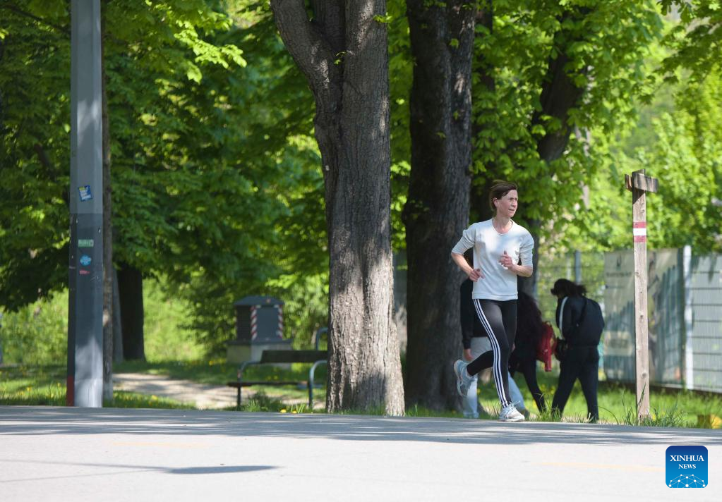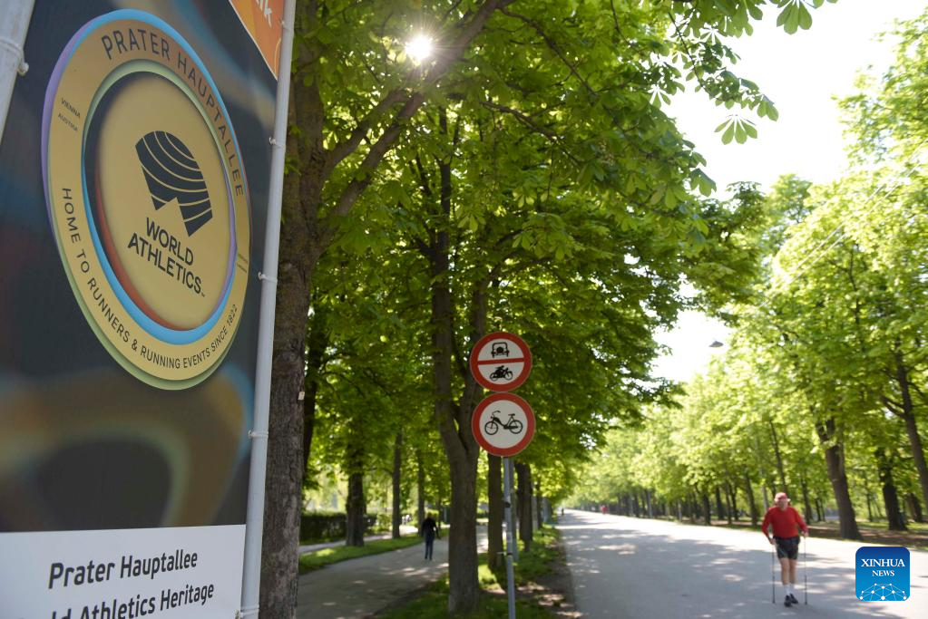 Citizens walk in Prater Hauptallee in Vienna, Austria on April 29, 2022. The famous Prater Hauptallee was awarded the World Athletics Heritage Plaque in the category of "Landmark" earlier this April. (Xinhua/Guo Chen)