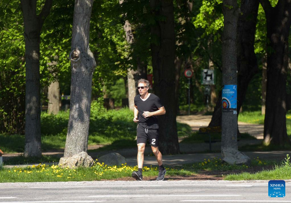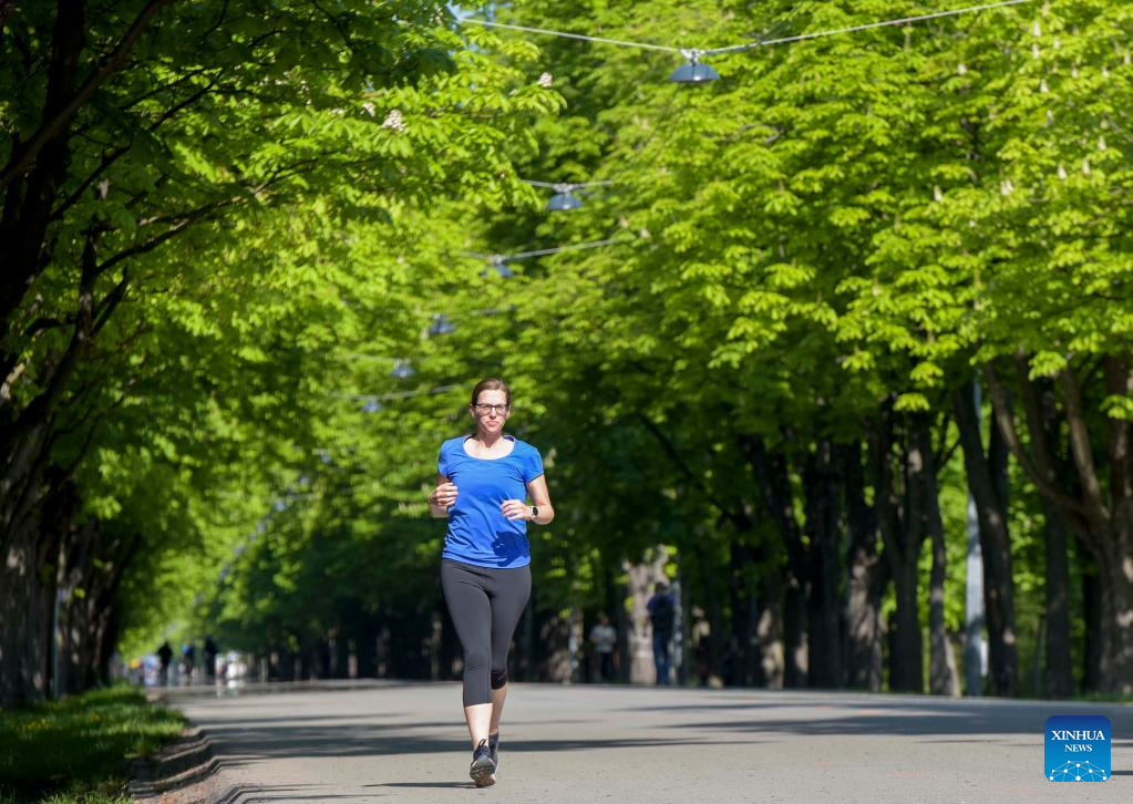 A jogger runs at Prater Hauptallee in Vienna, Austria on April 29, 2022. The famous Prater Hauptallee was awarded the World Athletics Heritage Plaque in the category of "Landmark" earlier this April. (Xinhua/Guo Chen)