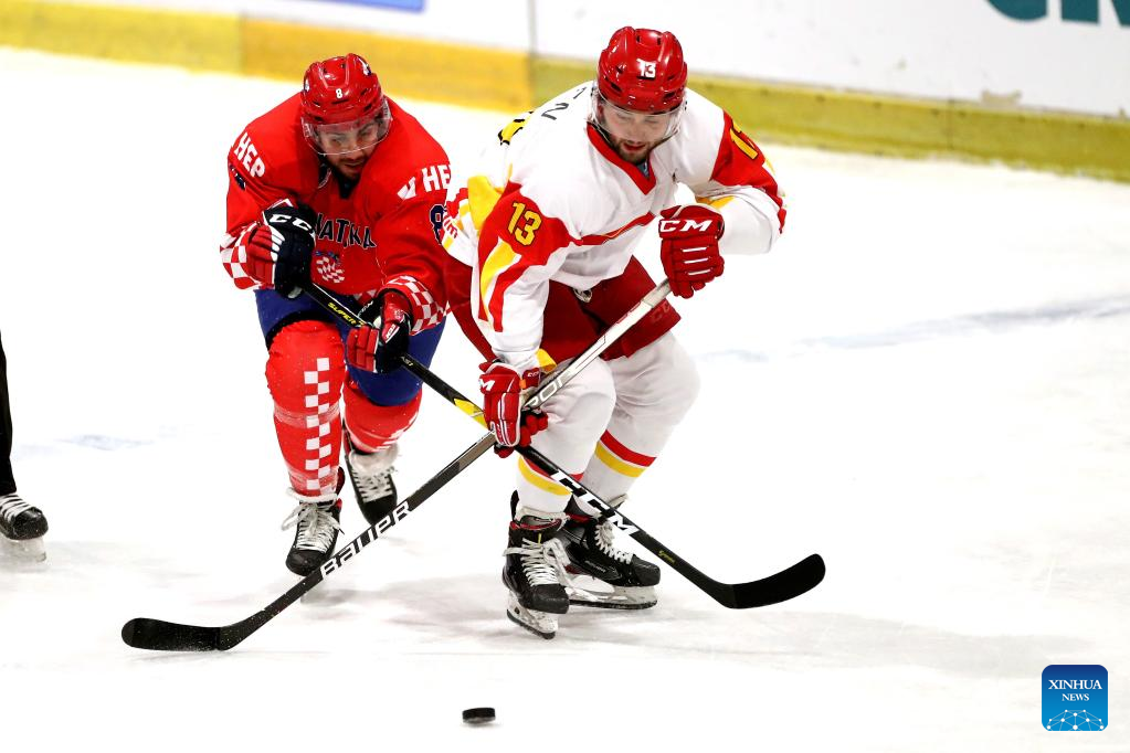 ZAGREB, April 29 (Xinhua) -- China secured a spot of Division 1 after beating hosts Croatia 5-1 here on Friday to top the Division 2 Group A one round early during the 2022 Ice Hockey Men's World Championship.