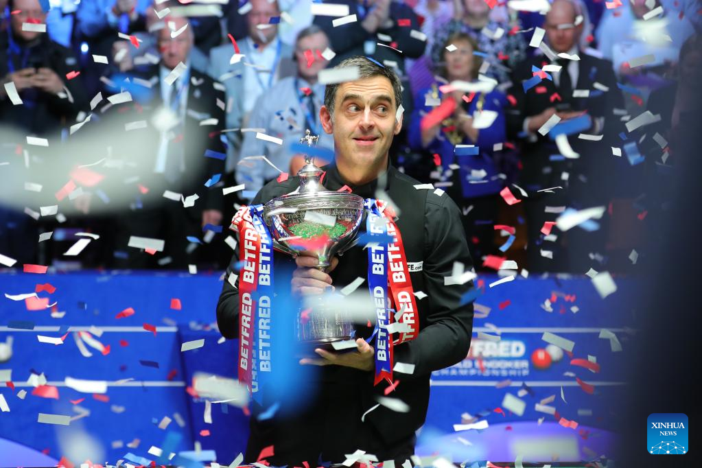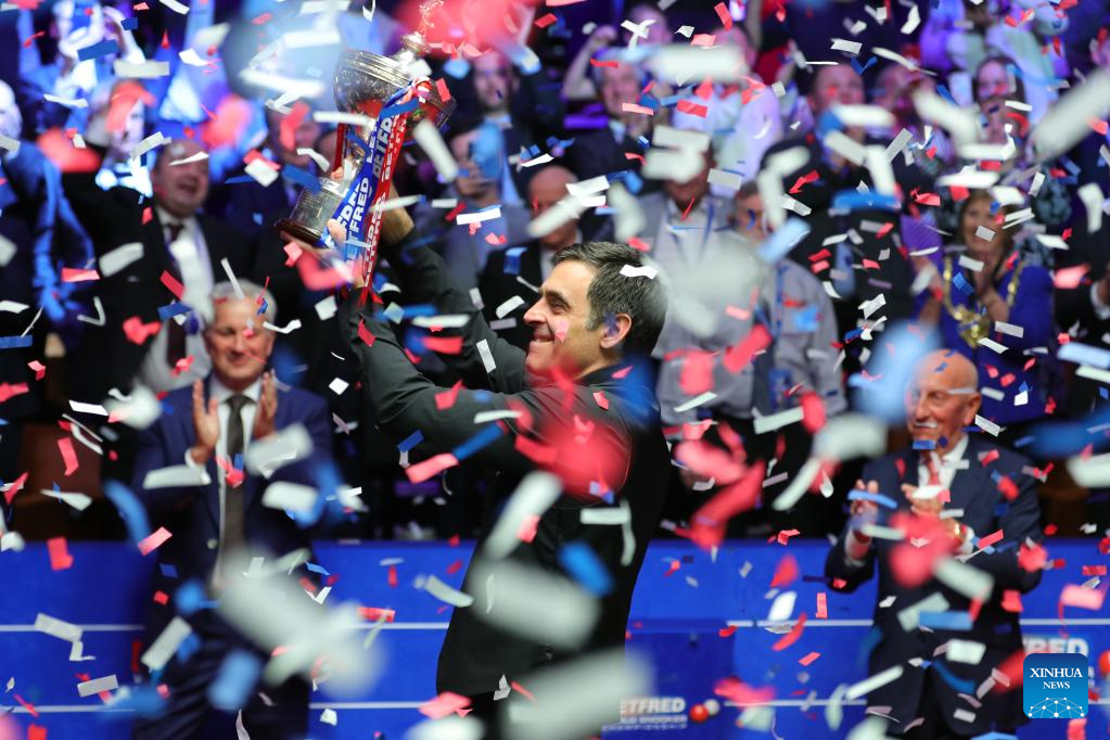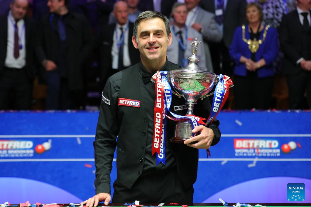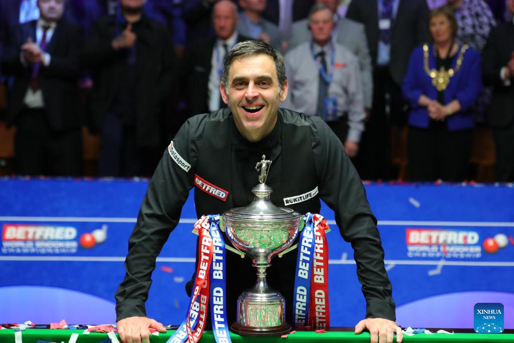 LONDON, May 2 (Xinhua) -- Ronnie O'Sullivan beat Judd Trump 18-13 on Monday to win the World Snooker Championship title for the seventh time, equaling the record held by Stephen Hendry.