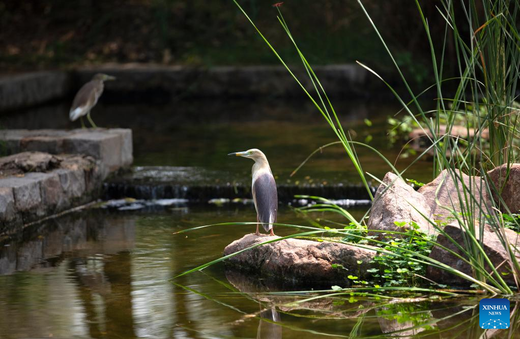 Pond herons rest near a pond in Sunder Nursery, a heritage park, in New Delhi, India, May 6, 2022. (Xinhua/Javed Dar)