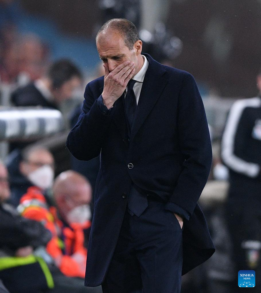 FC Juventus' head coach Massimiliano Allegri reacts during a Serie A football match between Genoa and FC Juventus in Genova, Italy, on May 6, 2022. (Str/Xinhua)