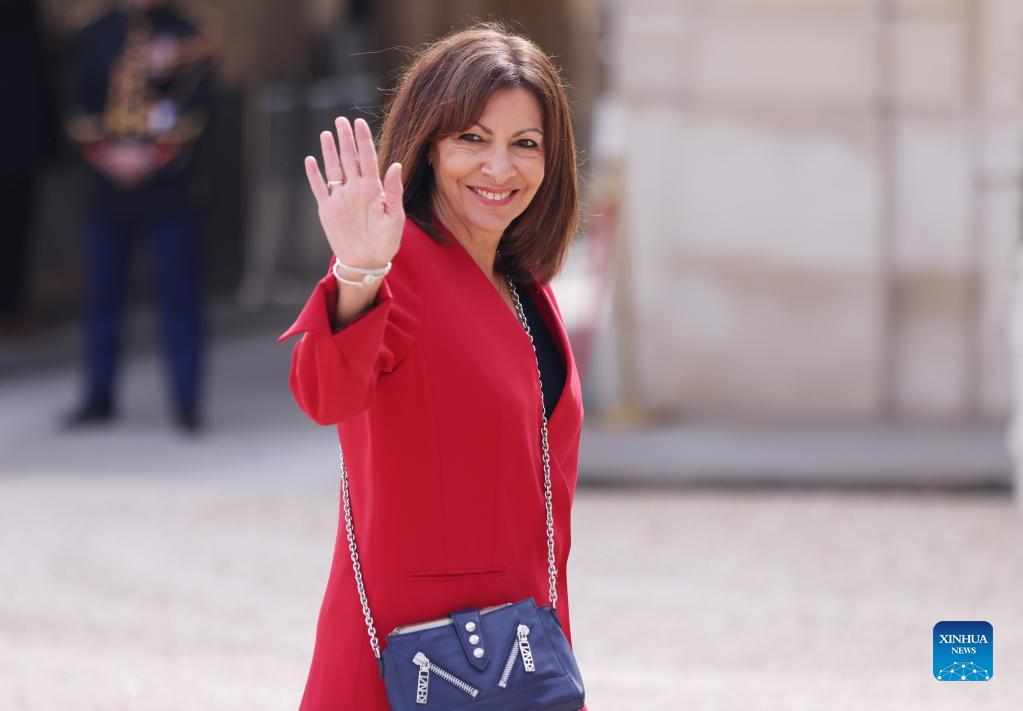 Mayor of Paris Anne Hidalgo arrives at the Elysee Palace to attend the investiture ceremony of Emmanuel Macron as French President in Paris, France, May 7, 2022. Macron won the second round of the election held on April 24 with an absolute majority of 18,768,638 votes (58.55 percent of the valid ballots cast). According to law, Macron's second term must begin no later than May 14. (Xinhua/Gao Jing)
