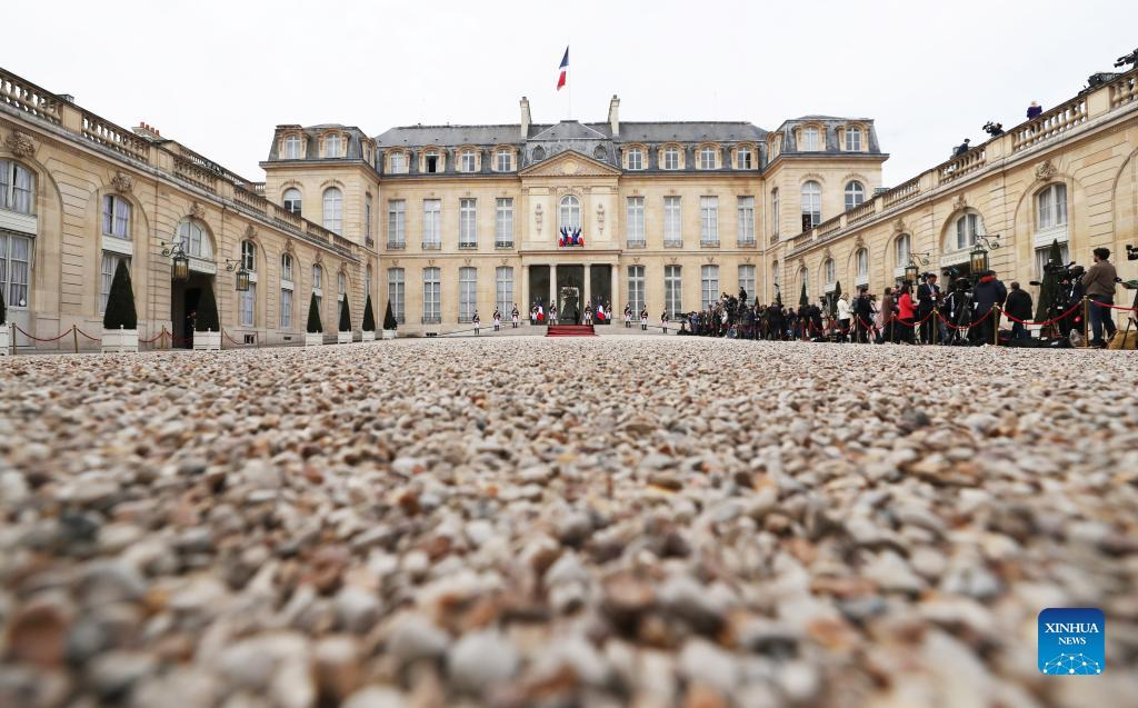 The Elysee Palace is seen before the investiture ceremony of Emmanuel Macron as French President in Paris, France, May 7, 2022. Macron won the second round of the election held on April 24 with an absolute majority of 18,768,638 votes (58.55 percent of the valid ballots cast). According to law, Macron's second term must begin no later than May 14. (Xinhua/Gao Jing)