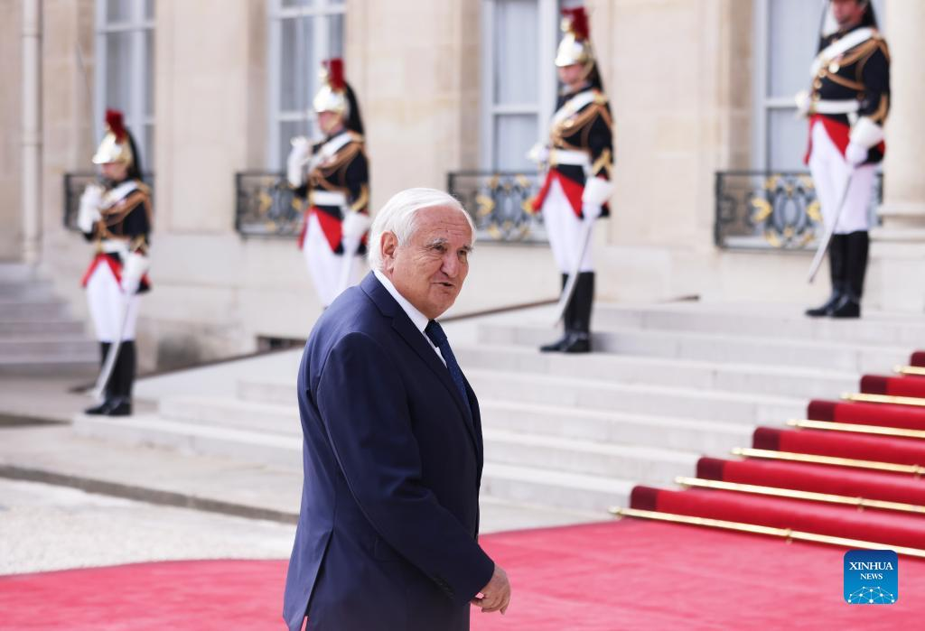 Former French Prime Minister Jean-Pierre Raffarin arrives at the Elysee Palace to attend the investiture ceremony of Emmanuel Macron as French President in Paris, France, May 7, 2022. Macron won the second round of the election held on April 24 with an absolute majority of 18,768,638 votes (58.55 percent of the valid ballots cast). According to law, Macron's second term must begin no later than May 14. (Xinhua/Gao Jing)
