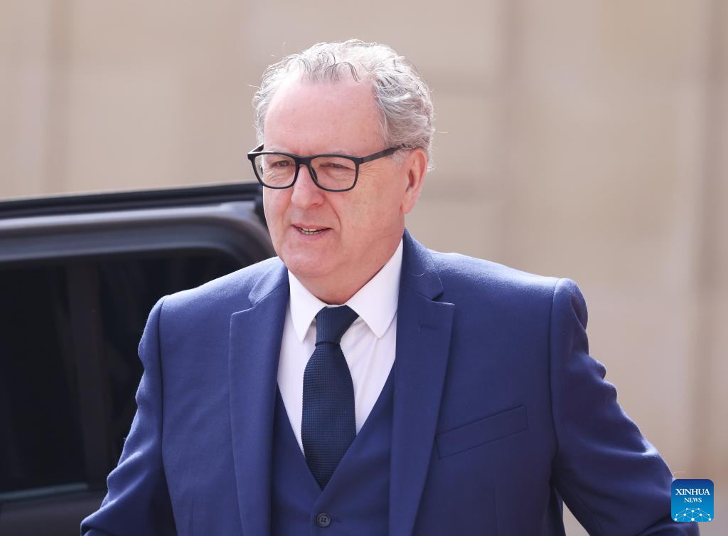 President of the French national assembly Richard Ferrand arrives at the Elysee Palace for the investiture ceremony of Emmanuel Macron as French President in Paris, France, May 7, 2022. (Xinhua/Gao Jing)