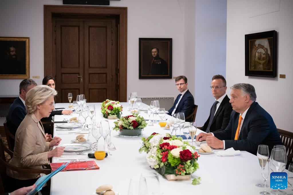 BUDAPEST, May 9 (Xinhua) -- Hungarian Prime Minister Viktor Orban met with Ursula von der Leyen, president of the European Commission (EC) here on Monday, reaching no agreement yet over the proposed Russian oil embargo.