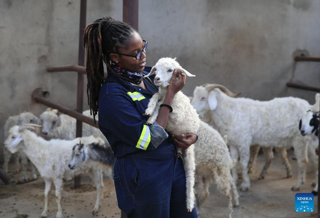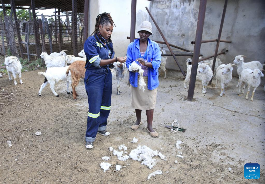 BULAWAYO, Zimbabwe, May 15 (Xinhua) -- At a plot on the outskirts of Bulawayo, Zimbabwe's second-largest city, two women were after a trip of Angora goats aiming to catch one of the adorable balls of fur.