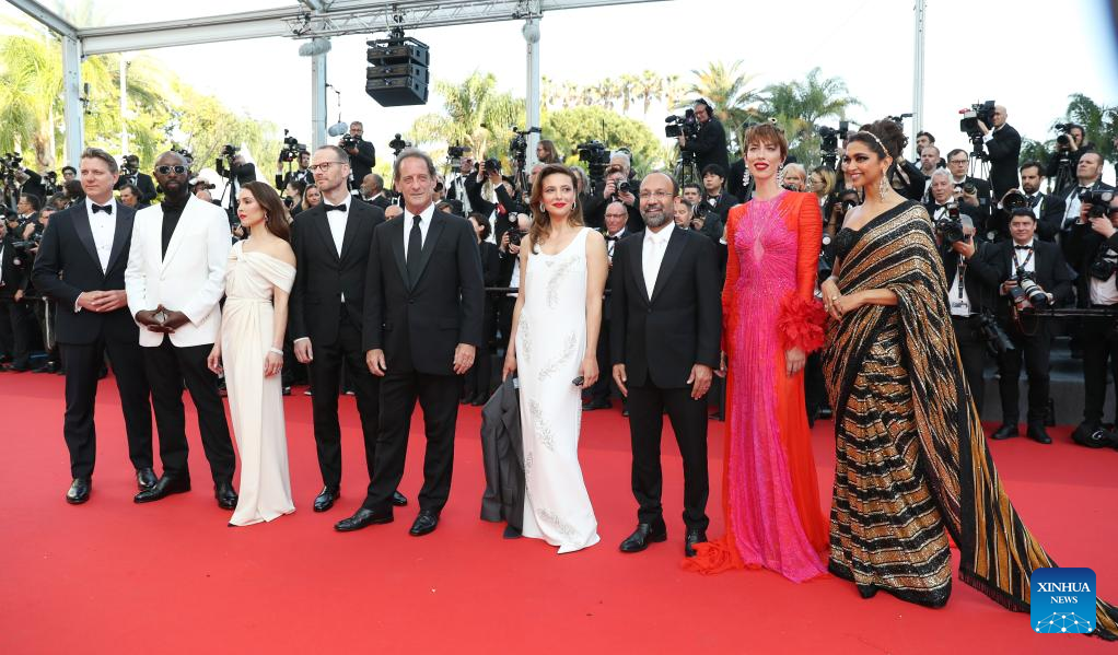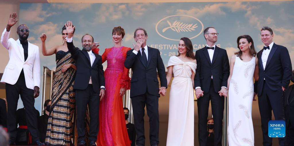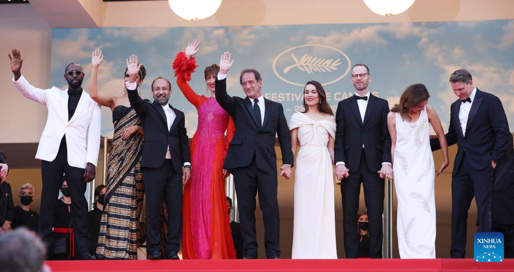 Jury members arrive ahead of the opening ceremony of the 75th edition of the Cannes Film Festival in Cannes, southern France, on May 17, 2022. The 75th edition of the Cannes Film Festival kicked off here on Tuesday. (Xinhua/Gao Jing)