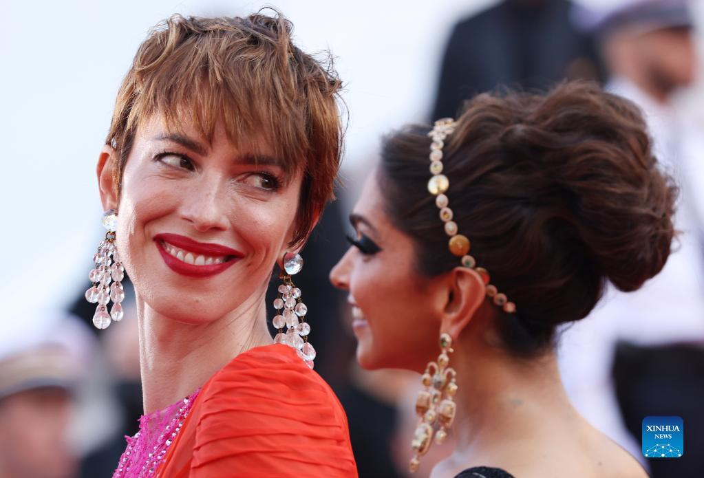Jury members Rebecca Hall (L) and Deepika Padukone arrive ahead of the opening ceremony of the 75th edition of the Cannes Film Festival in Cannes, southern France, on May 17, 2022. The 75th edition of the Cannes Film Festival kicked off here on Tuesday. (Xinhua/Gao Jing)
