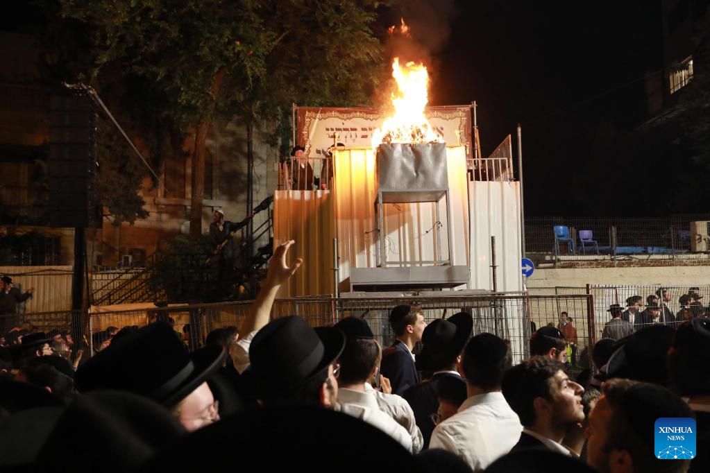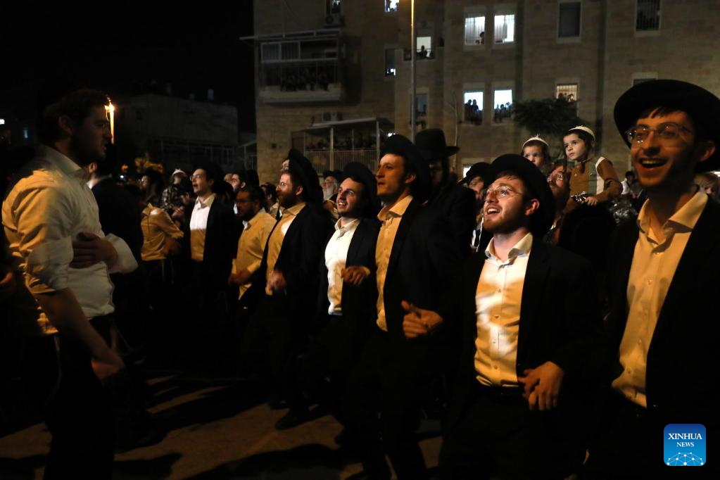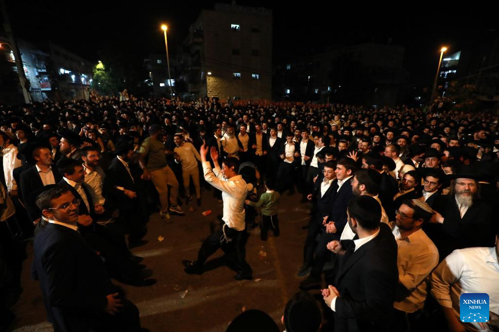 Ultra-Orthodox Jews participate in celebrations of the Jewish holiday of Lag BaOmer in Jerusalem on May 18, 2022. (Photo by Muammar Awad/Xinhua)