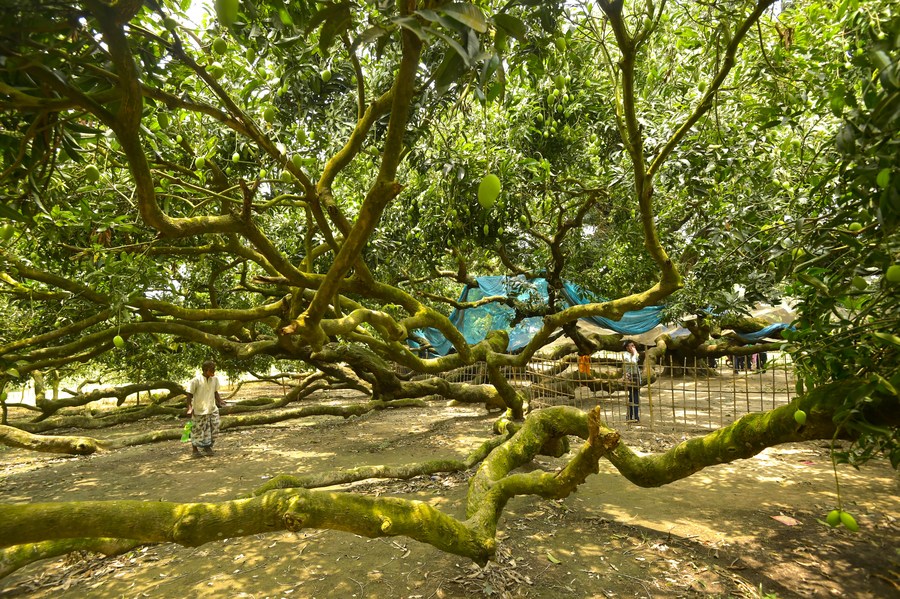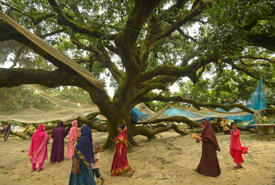 People view an old mango tree in Thakurgaon, Bangladesh, May 18, 2022. (Xinhua)