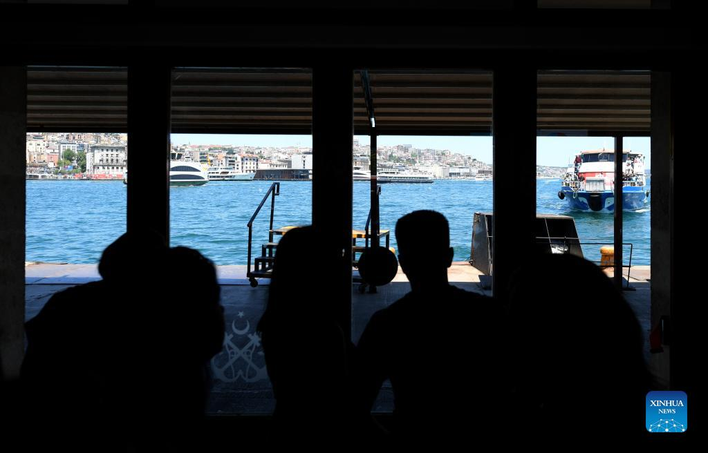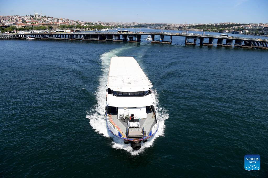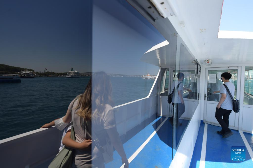 People cruise the Bosporus Strait in Istanbul, Turkey, May 24, 2022. The foreign arrivals in Turkey surged by 225.6 percent year-on-year to 2.57 million in April, the official figures showed on Monday, as the country is trying to recover from the impact of COVID-19. (Xinhua/Shadati)