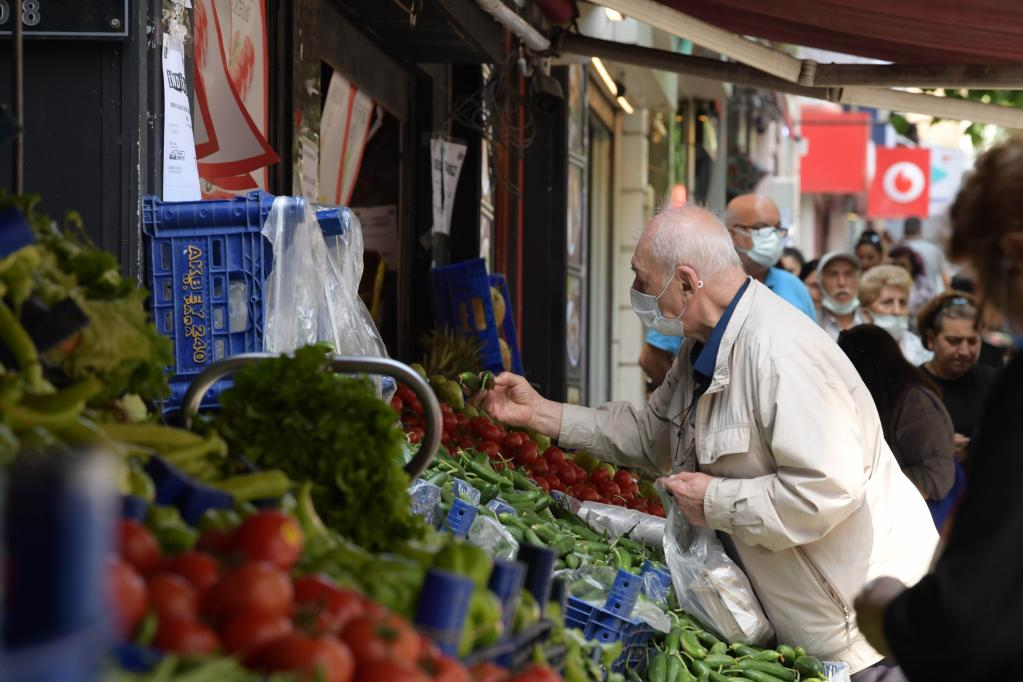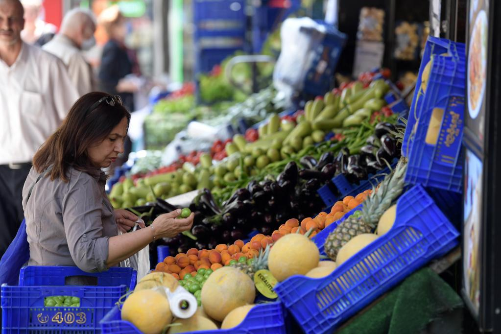 A customer purchases vegetables at a stall in Istanbul, Turkey, May 26, 2022.