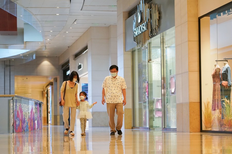 People walk in a department store in Chaoyang District of Beijing, capital of China, May 29, 2022. (Xinhua/Chen Zhonghao)