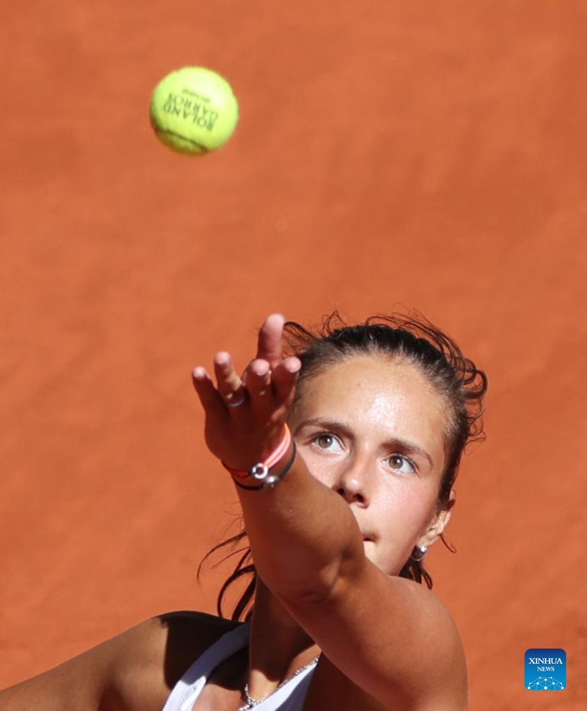 Daria Kasatkina serves the ball during the women's singles semifinal between Iga Swiatek of Poland and Daria Kasatkina of Russia at the French Open tennis tournament at Roland Garros in Paris, France, June 2, 2022. (Xinhua/Gao Jing)