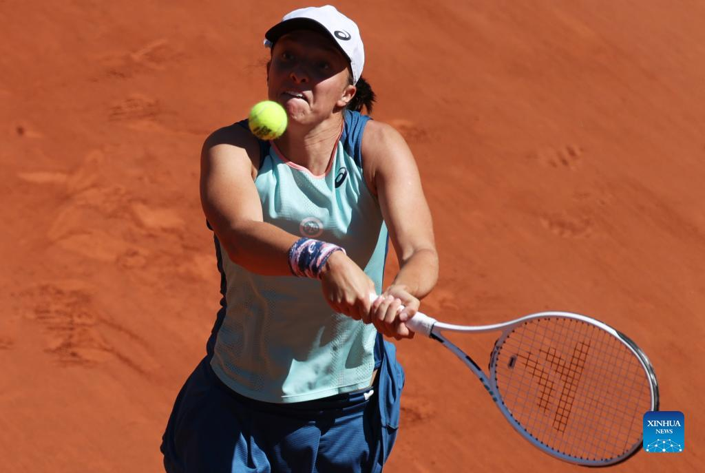 PARIS, June 2 (Xinhua) -- World No. 1 Iga Swiatek blasted into her second Roland Garros final after a comfortable 6-2, 6-1 win over 20th seed Daria Kasatkina on Thursday, setting up the showdown against American teenager Coco Gauff in the final on Saturday.