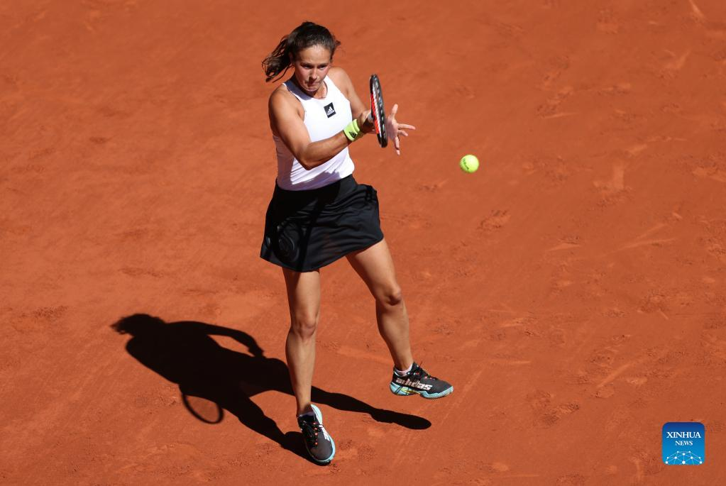 Daria Kasatkina returns a shot during the women's singles semifinal between Iga Swiatek of Poland and Daria Kasatkina of Russia at the French Open tennis tournament at Roland Garros in Paris, France, June 2, 2022. (Xinhua/Gao Jing)