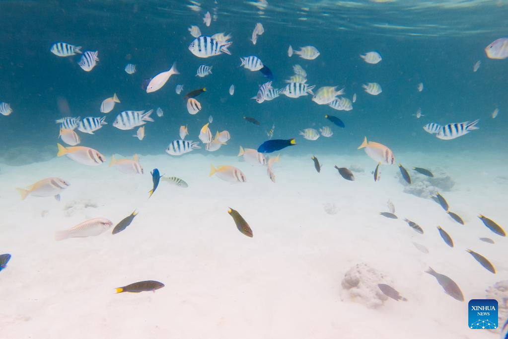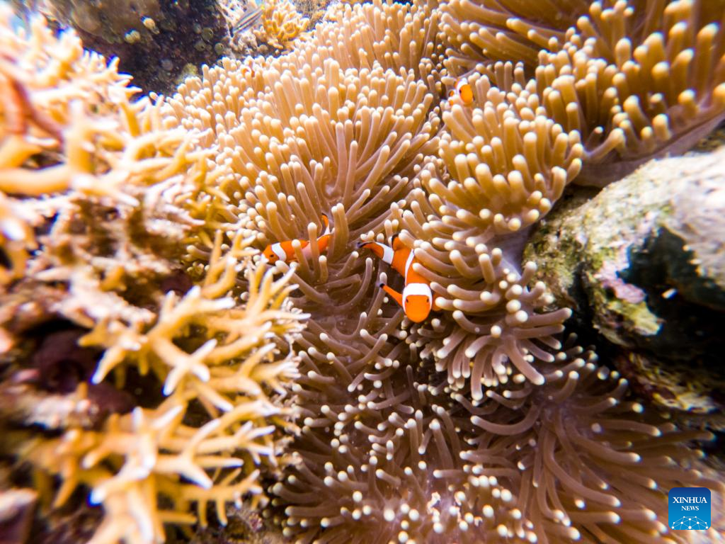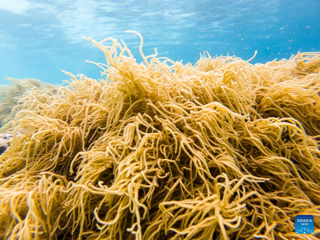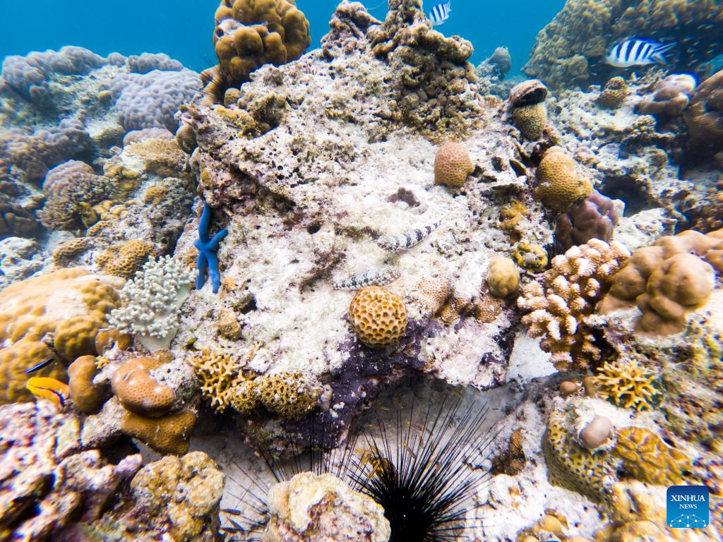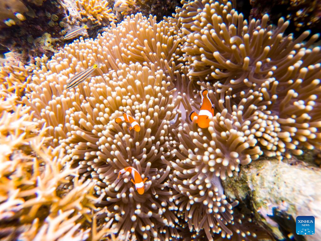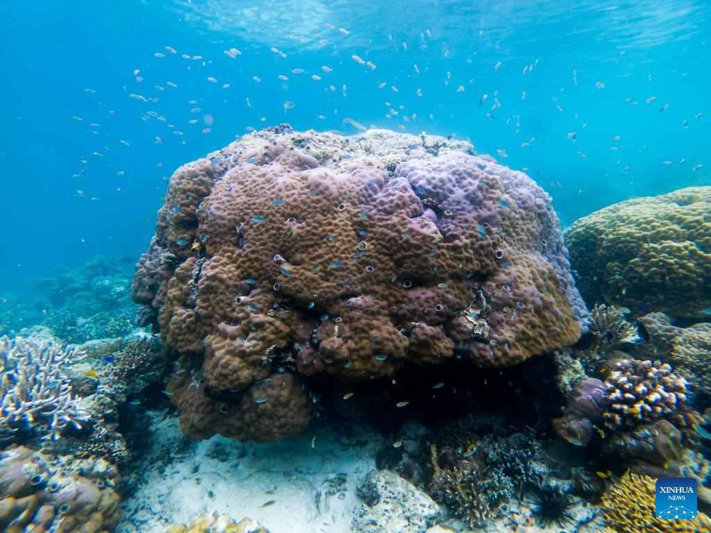 Photo taken on May 14, 2022 shows the underwater scenery off the Semporna of Sabah, Malaysia. A healthy marine ecosystem here provides a habitat for various marine lives. (Xinhua/Zhu Wei)