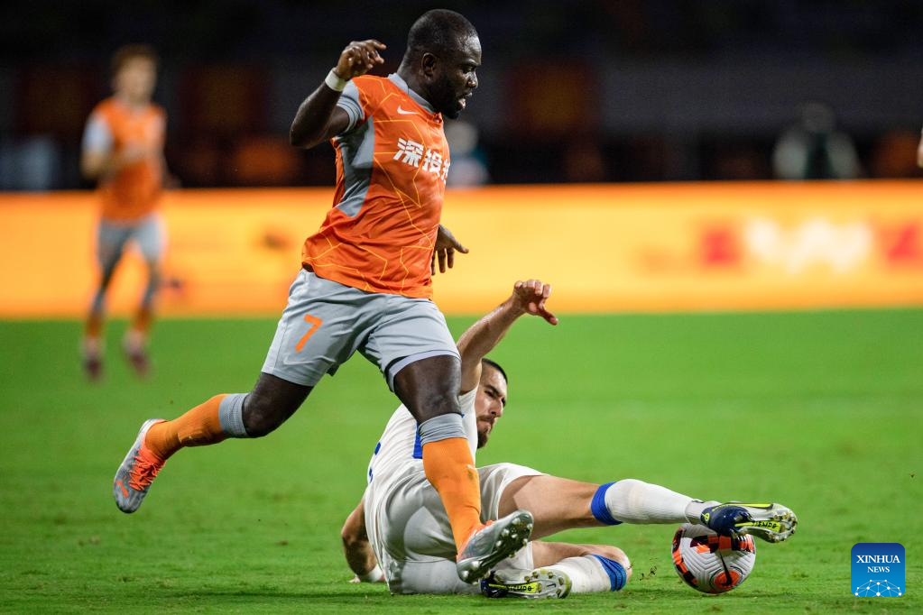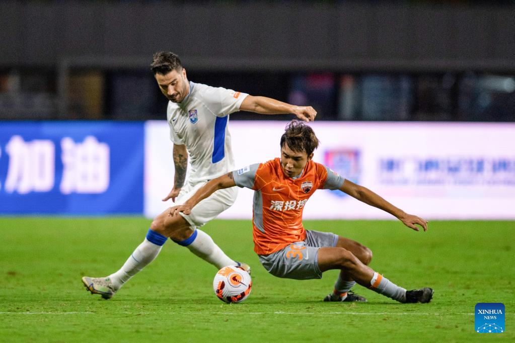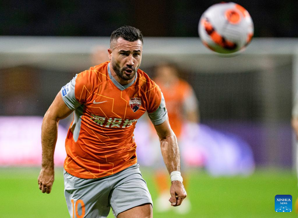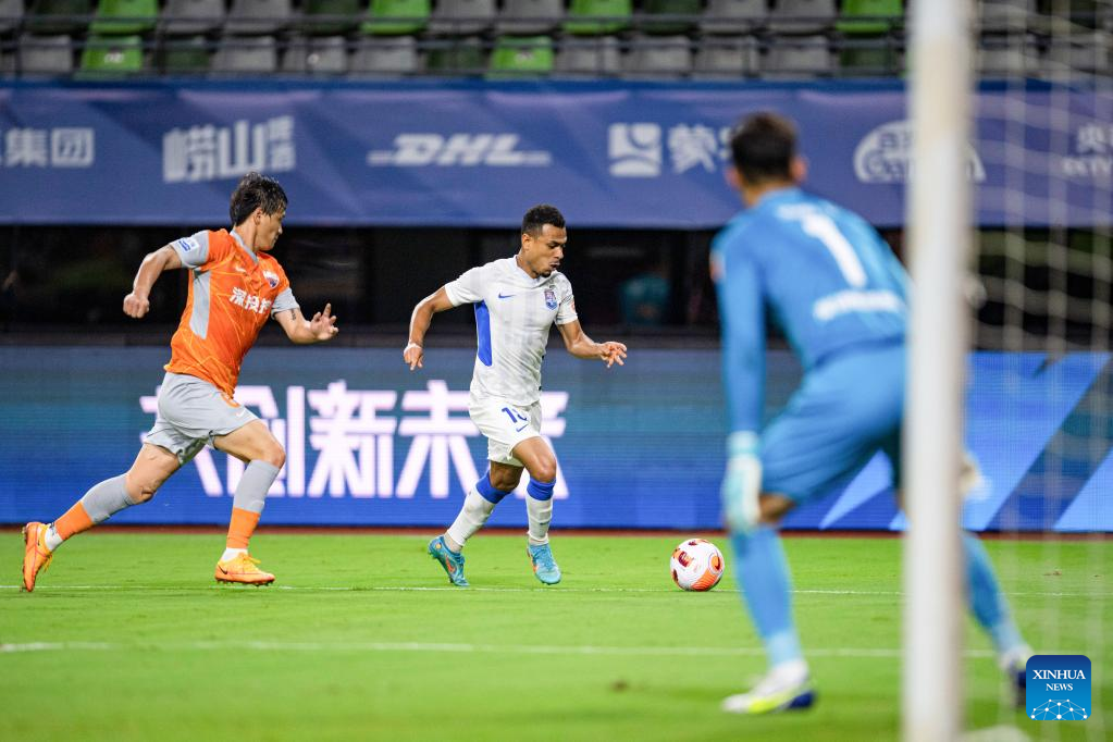 Alessandrini of Shenzhen FC competes during a 2022 season Chinese Football Association Super League (CSL) match between Tianjin Jinmen Tiger and Shenzhen FC in Meizhou, south China's Guangdong Province, June 9, 2022. (Xinhua/Sun Fei)