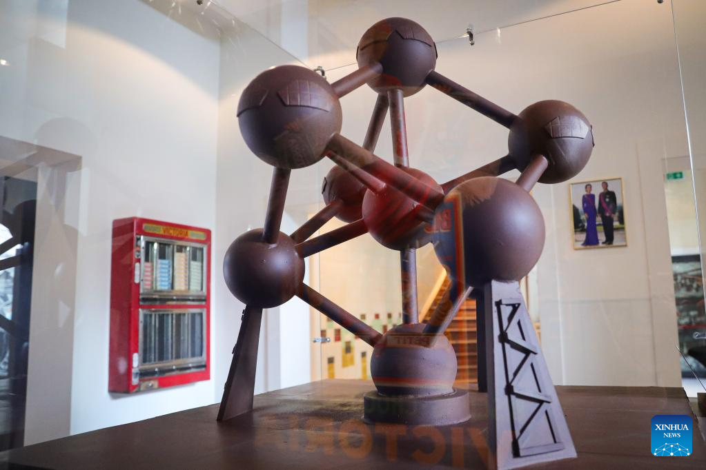 A statue made from chocolate is seen in the Belgian Chocolate Village in Brussels, Belgium, June 9, 2022. The Belgian Chocolate Village is a museum to showcase the knowledge, history and culture related to chocolate. (Xinhua/Zheng Huansong)
