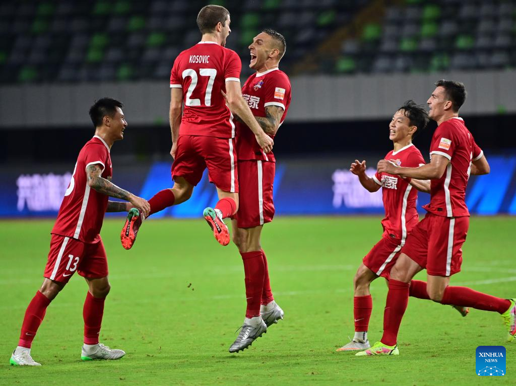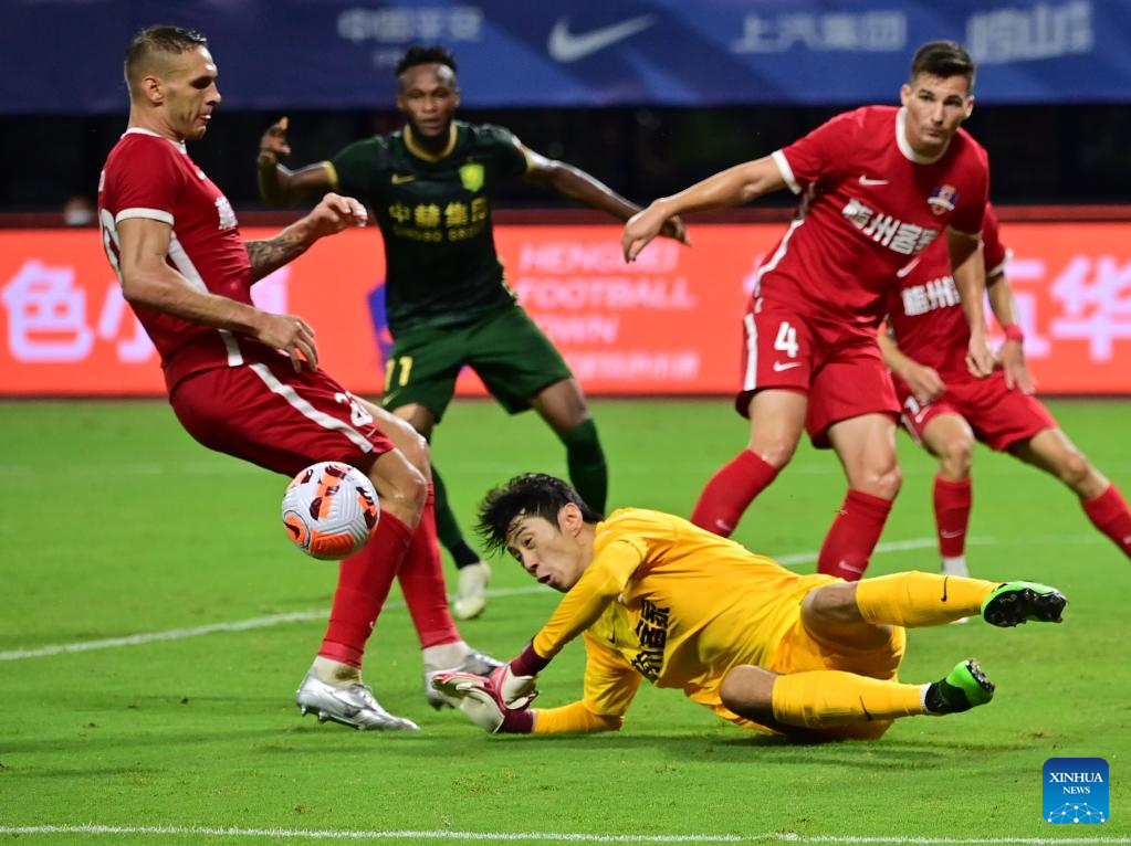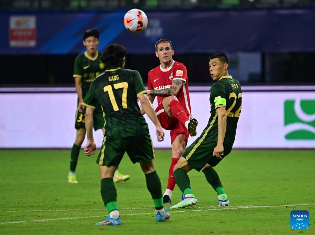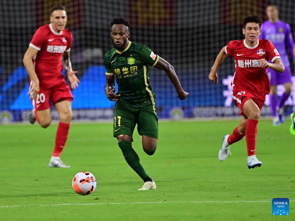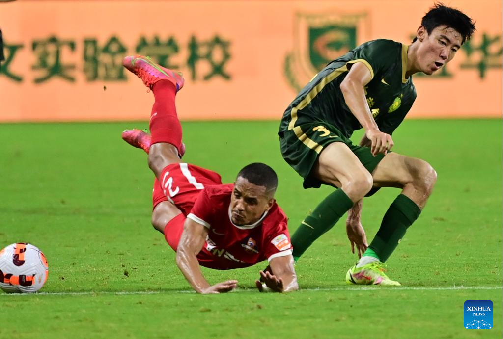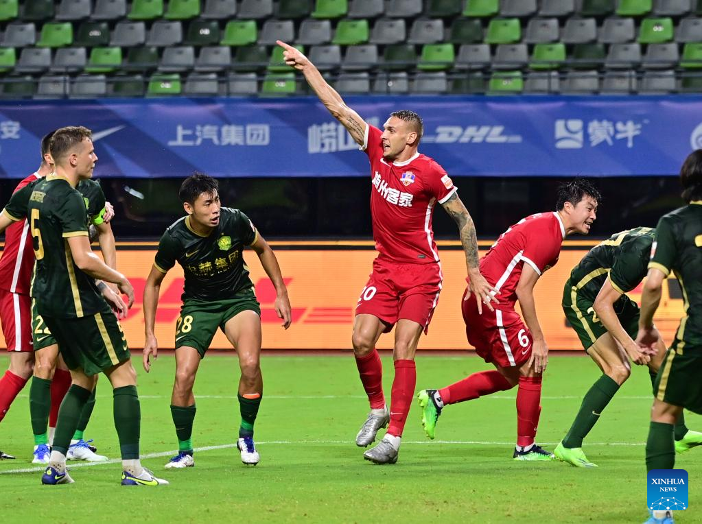 BEIJING, June 17 (Xinhua) -- Meizhou Hakka survived a red card and came from two goals behind to hold Beijing Guoan 2-2, while Shenzhen FC beat Cangzhou Mighty Lions 1-0 in the fourth round of 2022 Chinese Super League (CSL) on Friday.