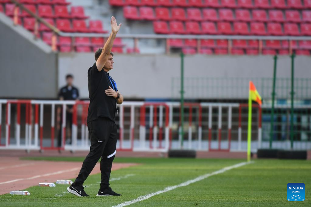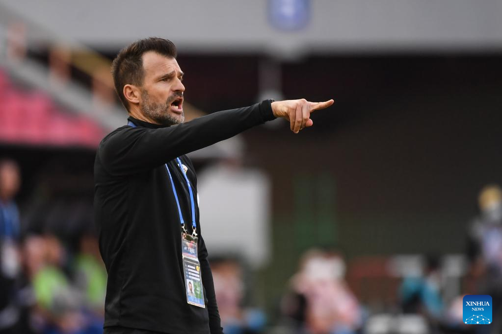 Head coach Ivan Leko of Shanghai Port gestures during a 2022 season Chinese Football Association Super League (CSL) match between Wuhan Three Towns and Shanghai Port in Dalian, northeast China's Liaoning Province, June 19, 2022. (Xinhua/Wang Yijie)
