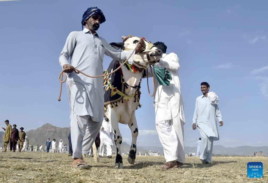Farmers arrive with a bull for a traditional bull race on the outskirts of Haripur in Pakistan's northwestern Khyber Pakhtunkhwa province, June 18, 2022. (Photo by Saeed Ahmad/Xinhua)
