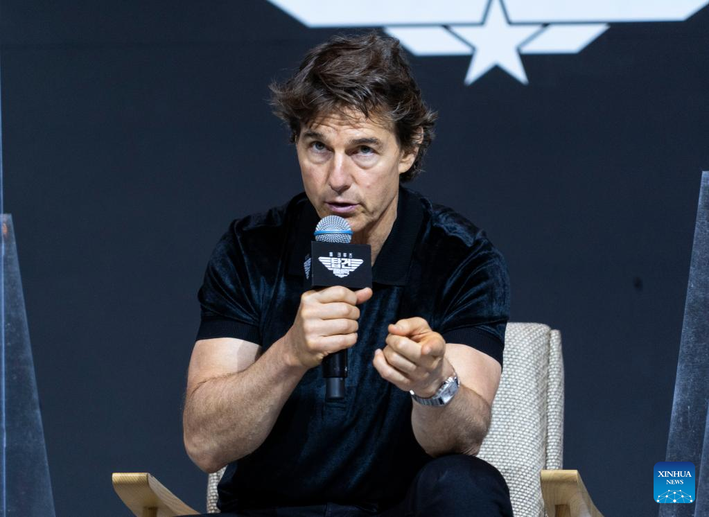 Actor Tom Cruise speaks during a press conference of "Top Gun: Maverick" global promotional tour in Seoul, South Korea, June 20, 2022. The film will hit theaters in South Korea from June 22. (Photo by James Lee/Xinhua)