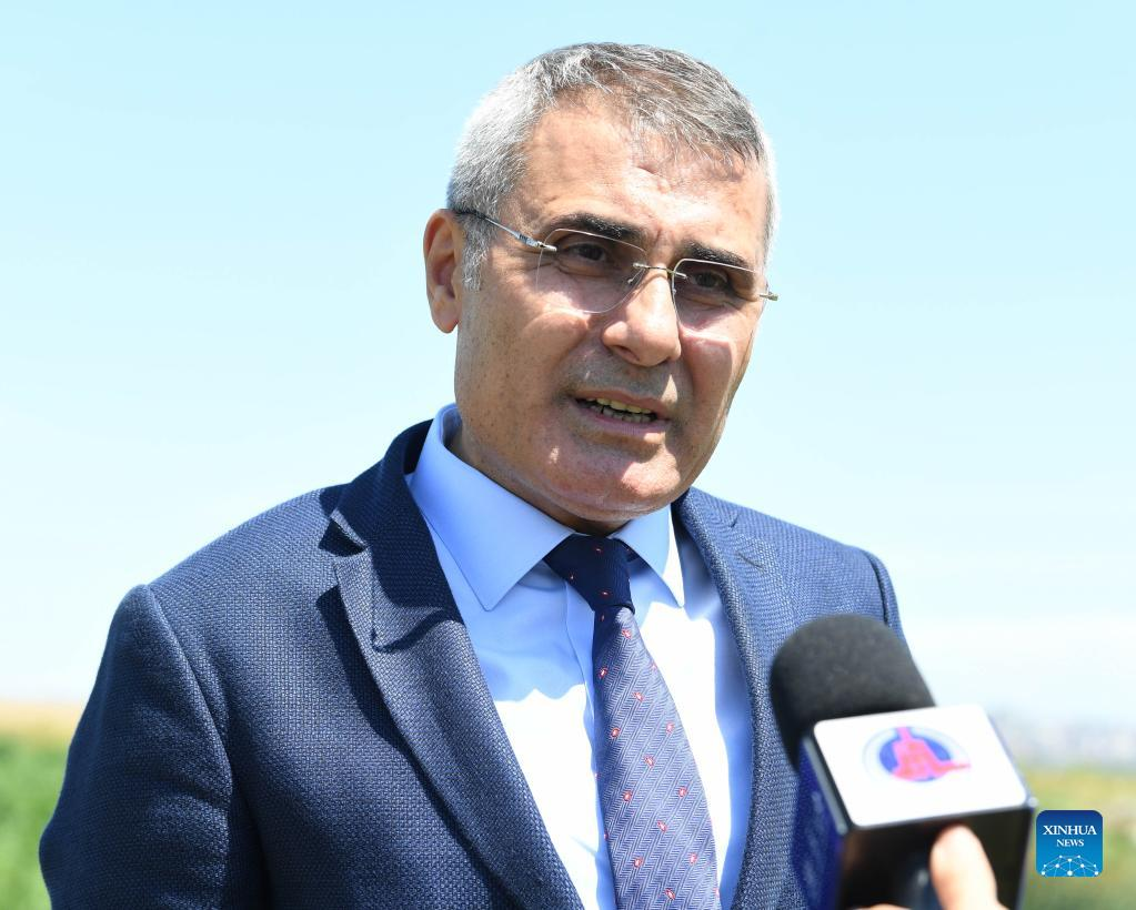Enes Turan, a crew chief, speaks during an interview with Xinhua at a reed field in Istanbul, Turkey, June 16, 2022. (Xinhua/Shadati)
