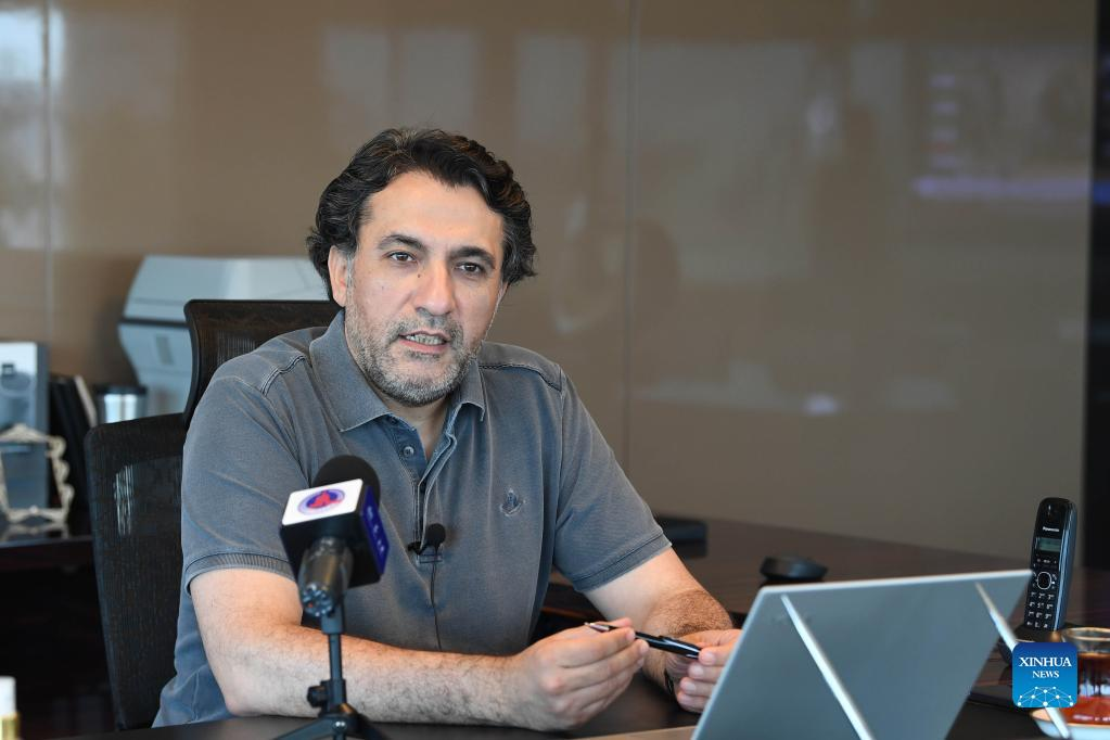 Abdurrahman Yalcinkaya, a Turkish gold dealer, speaks in an interview with Xinhua inside his office in Istanbul, Turkey, June 21, 2022. (Xinhua/Shadati)