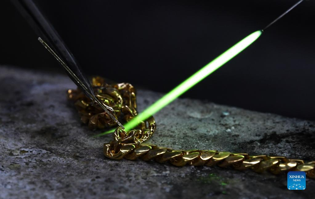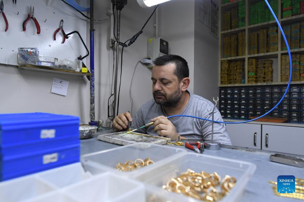 A staff member of Prestige Jewelry works in an atelier in Istanbul, Turkey, June 21, 2022. (Xinhua/Shadati)