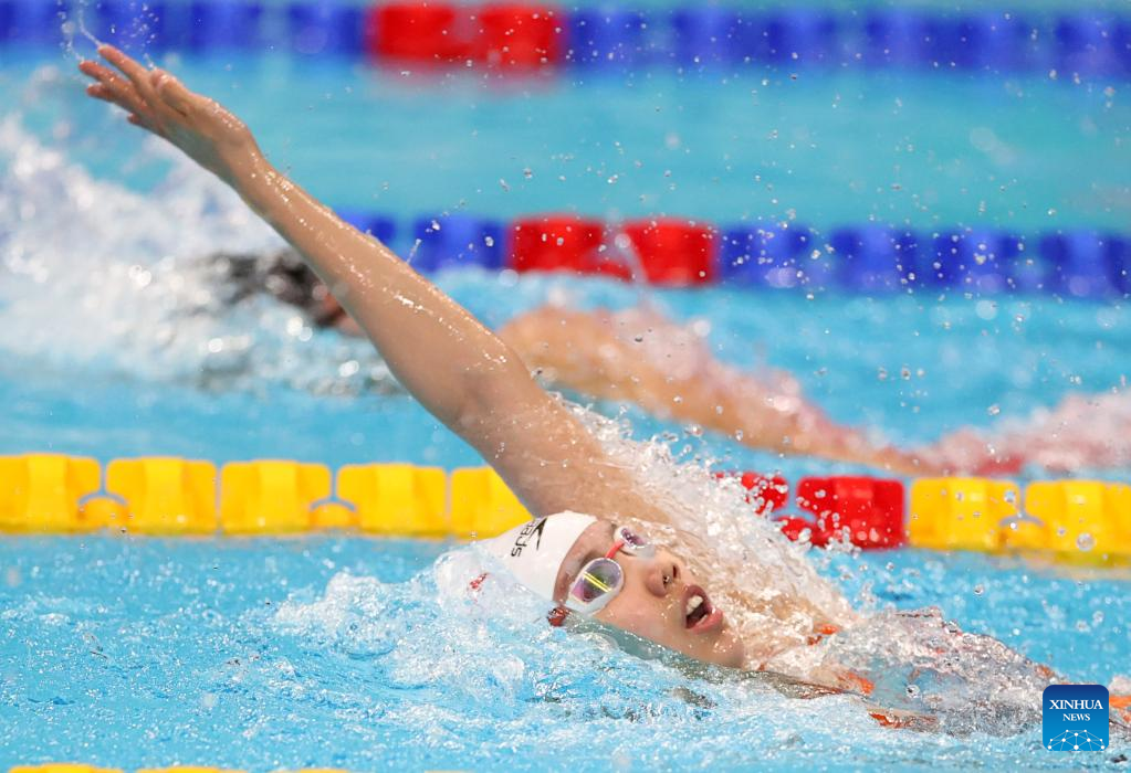 Peng Xuwei of China competes during the women's 200m backstroke semifinal at the 19th FINA World Championships in Budapest, Hungary, June 23, 2022. (Xinhua/Li Ying)
