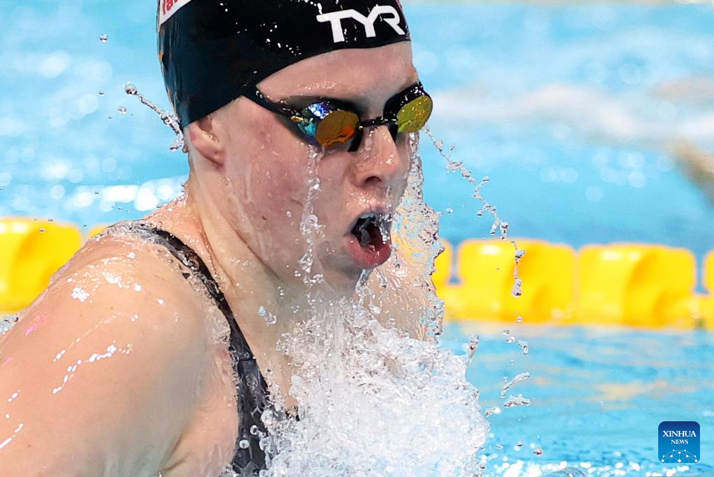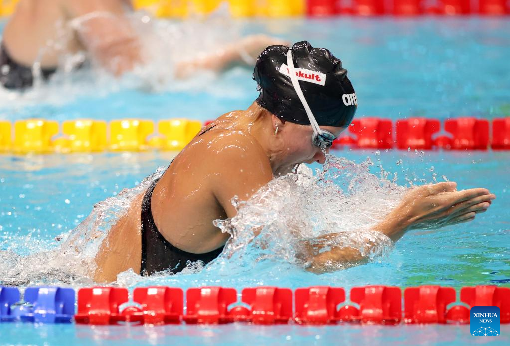 Kate Douglass of the United States competes during the women's 200m breaststroke final at the 19th FINA World Championships in Budapest, Hungary, June 23, 2022. (Xinhua/Li Ying)