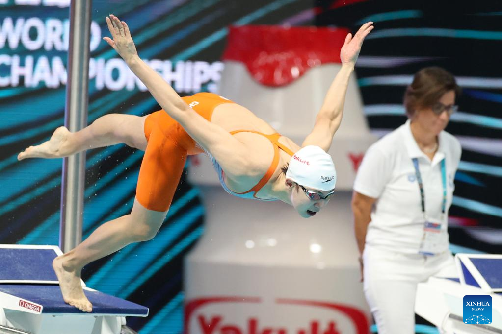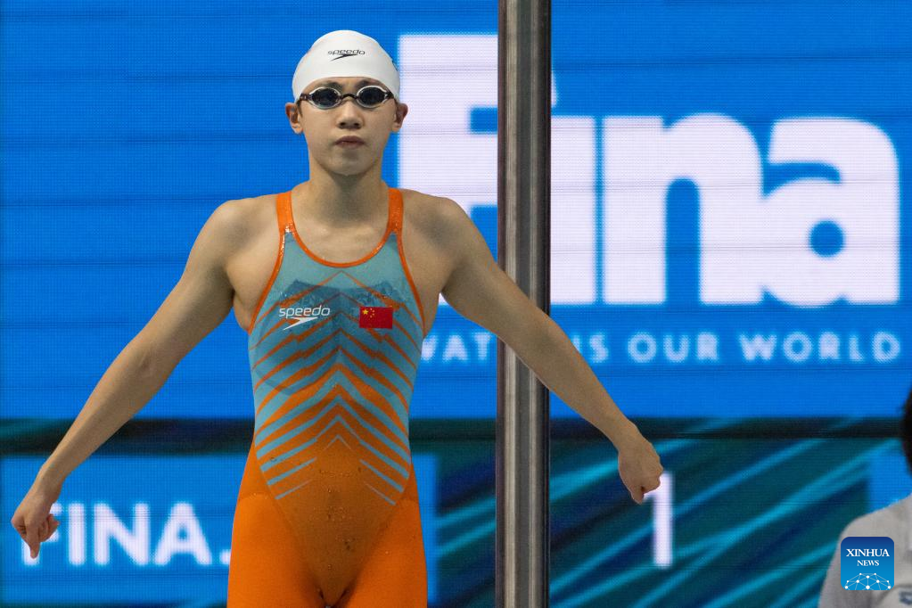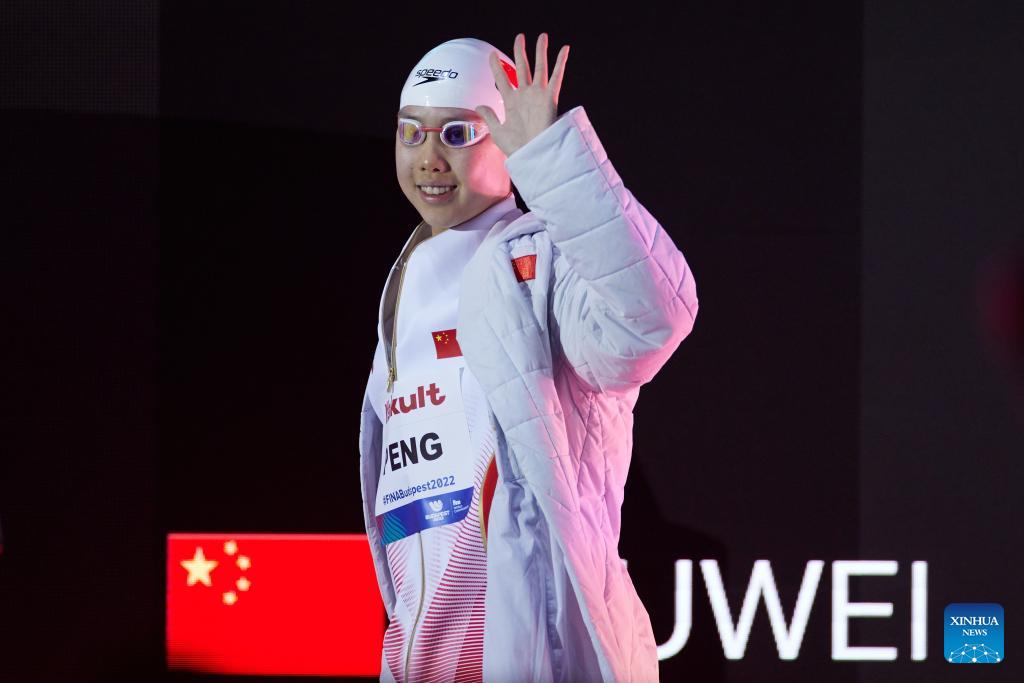 Peng Xuwei of China is seen prior to the women's 200m backstroke semifinal at the 19th FINA World Championships in Budapest, Hungary, June 23, 2022. (Xinhua/Meng Dingbo)