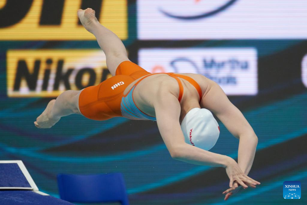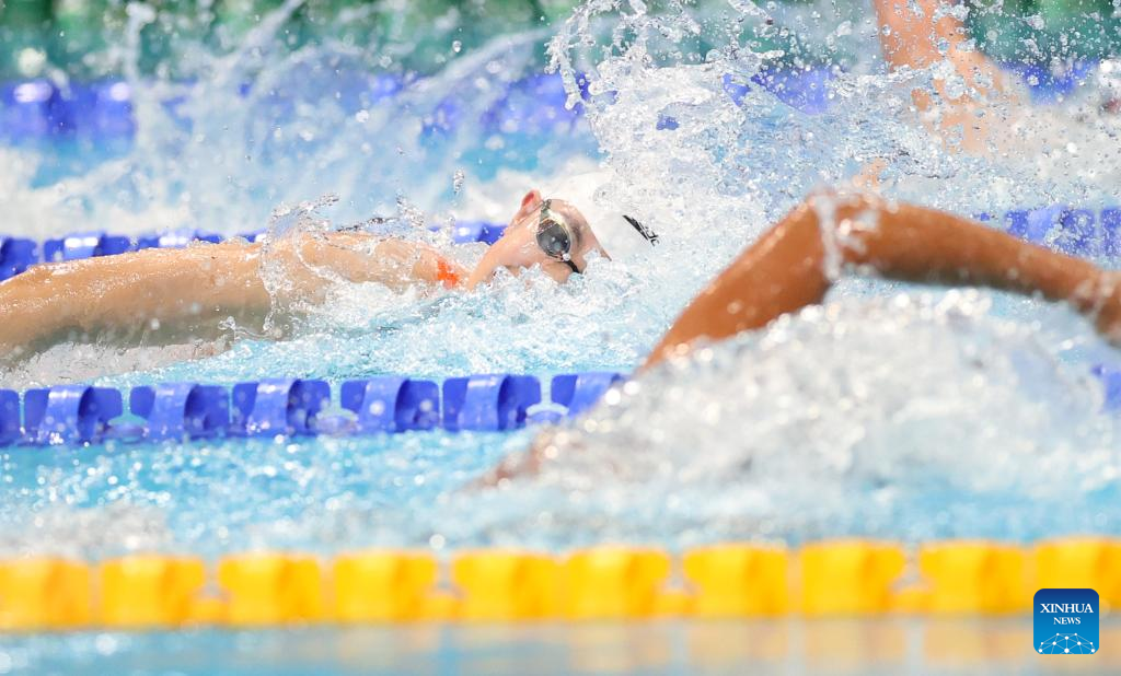Cheng Yujie of China competes during the women's 100m freestyle final at the 19th FINA World Championships in Budapest, Hungary, June 23, 2022. (Xinhua/Li Ying)