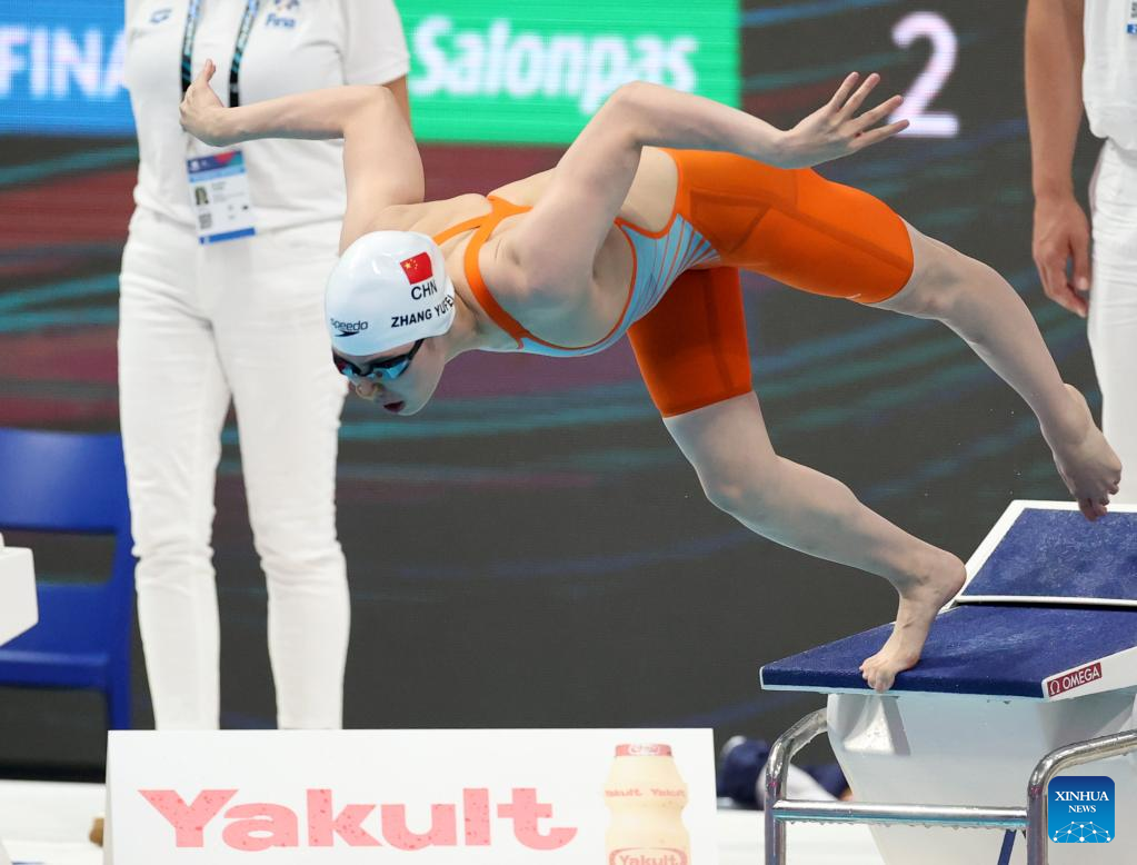 Zhang Yufei of China competes during the women's 50m butterfly semifinal at the 19th FINA World Championships in Budapest, Hungary, June 23, 2022. (Xinhua/Meng Dingbo)