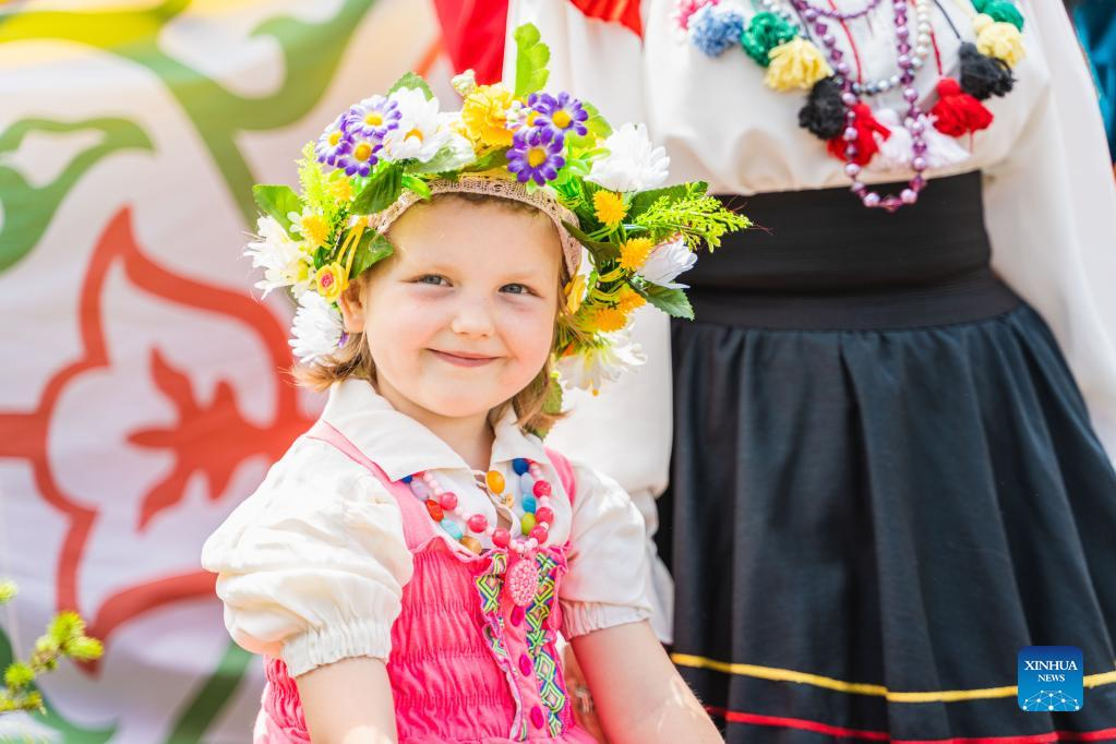 A girl in traditional costume participates the Sabantui festival in Vladivostok, Russia, June 25, 2022. Sabantui is a summer festival celebrated by Russia's Bashkir and Tatar ethnic minorities. (Xinhua/Guo Feizhou)