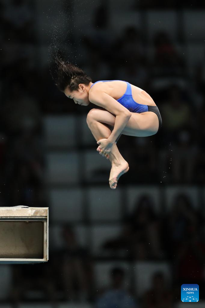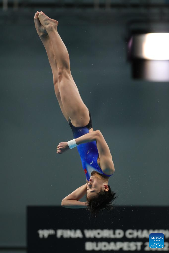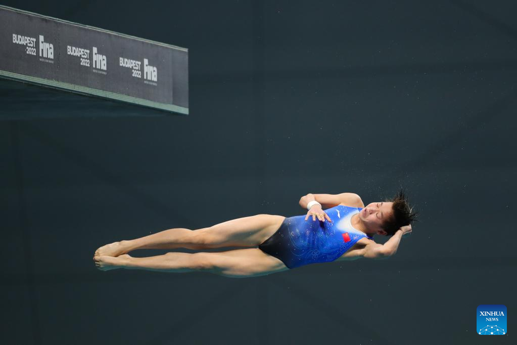 Quan Hongchan of China competes during the Women's 10m Platform preliminary of Diving at the 19th FINA World Championships in Budapest, Hungary, June 26, 2022. (Xinhua/Zheng Huansong)