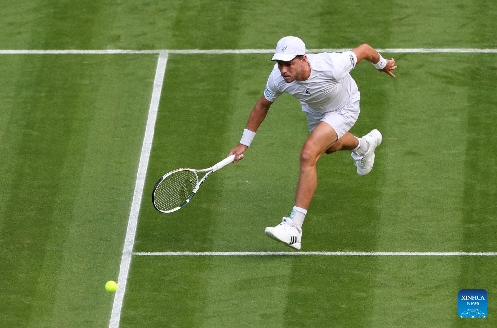 James Duckworth competes during the men's singles first round match between Andy Murray of Britain and James Duckworth of Australia at Wimbledon Tennis Championship in London, Britain, on June 27, 2022. (Xinhua/Han Yan)