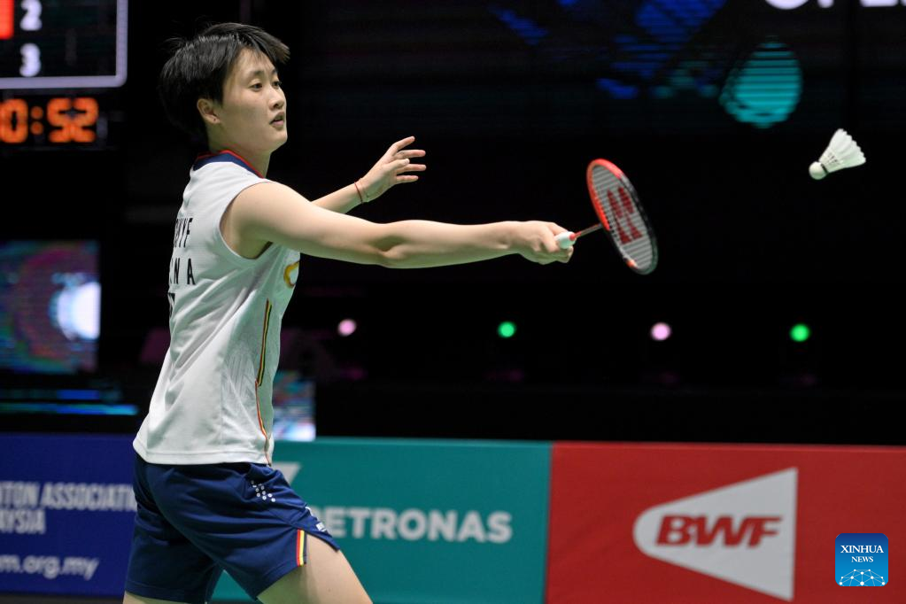 China's Chen Yufei competes during the women's singles first round match against her compatriot Zhang Yiman at Malaysia Open 2022 in Kuala Lumpur, Malaysia, June 29, 2022. (Photo by Chong Voon Chung/Xinhua)