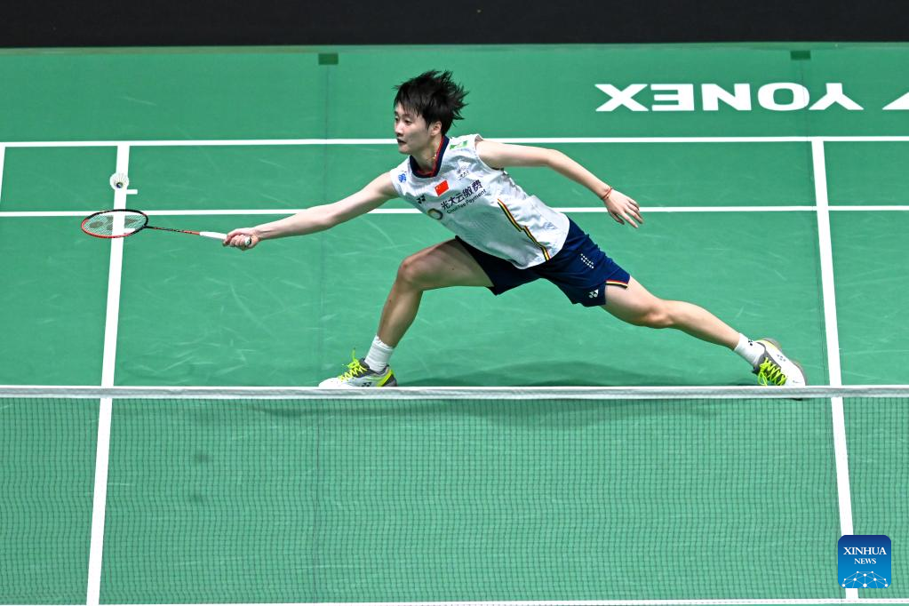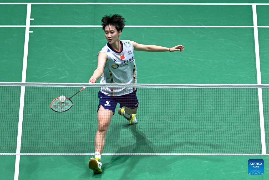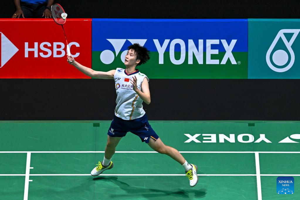 China's Chen Yufei competes during the women's singles first round match against her compatriot Zhang Yiman at Malaysia Open 2022 in Kuala Lumpur, Malaysia, June 29, 2022. (Xinhua/Zhu Wei)