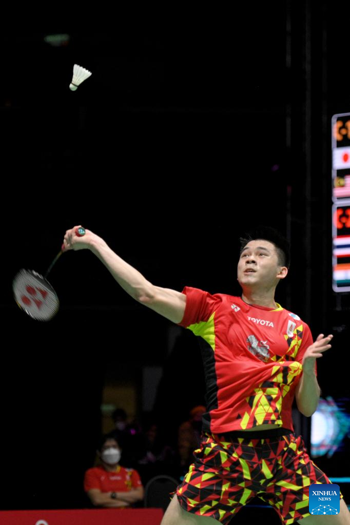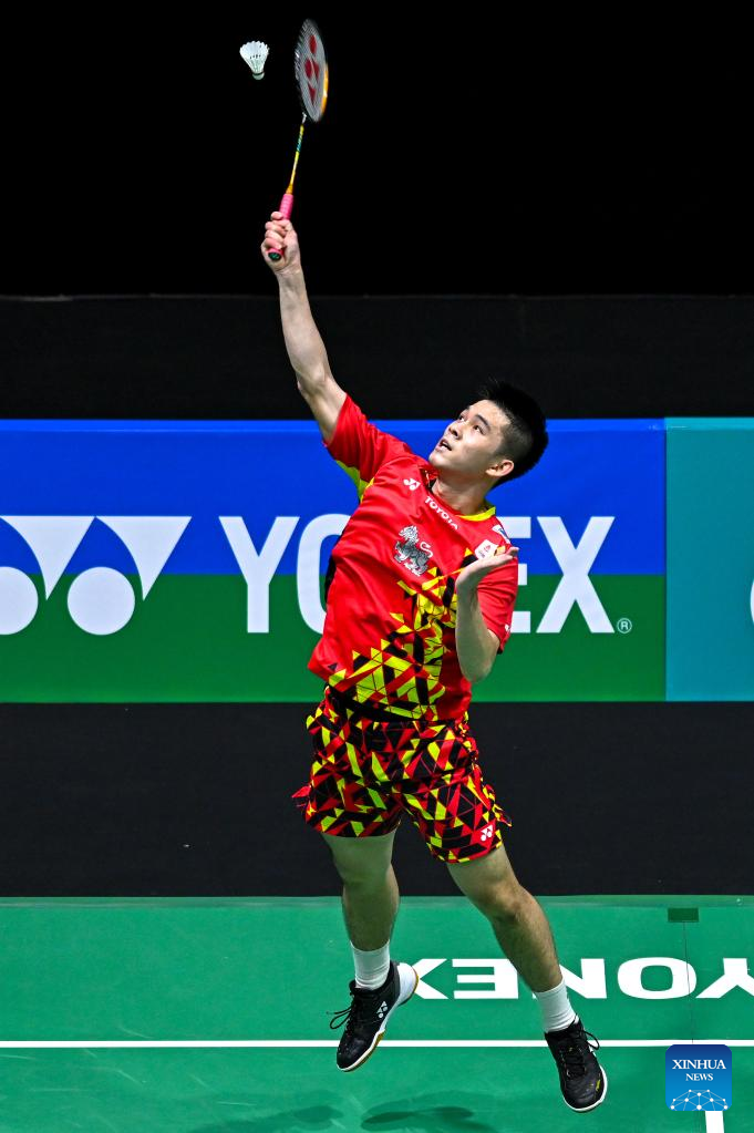 Kunlavut Vitidsarn competes during the men's singles round of 32 match between Zhao Junpeng of China and Kunlavut Vitidsarn of Thailand at Malaysia Open 2022 in Kuala Lumpur, Malaysia, June 29, 2022. (Xinhua/Zhu Wei)
