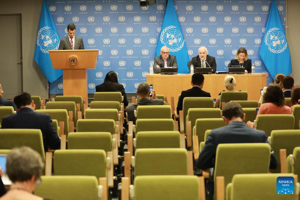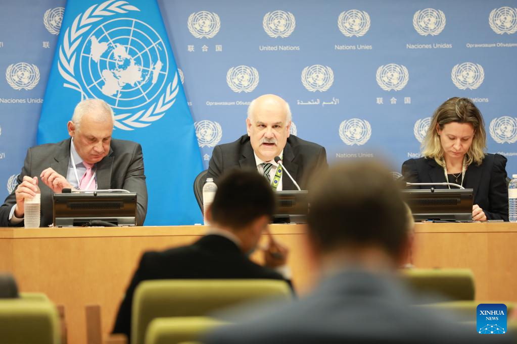 Ronaldo Costa Filho, Brazil's permanent representative to the United Nations and president of the UN Security Council for July, holds a press briefing at the UN headquarters in New York July 1, 2022. Brazil on Friday assumed the rotating presidency of the UN Security Council for July. (Xinhua/Xie E)