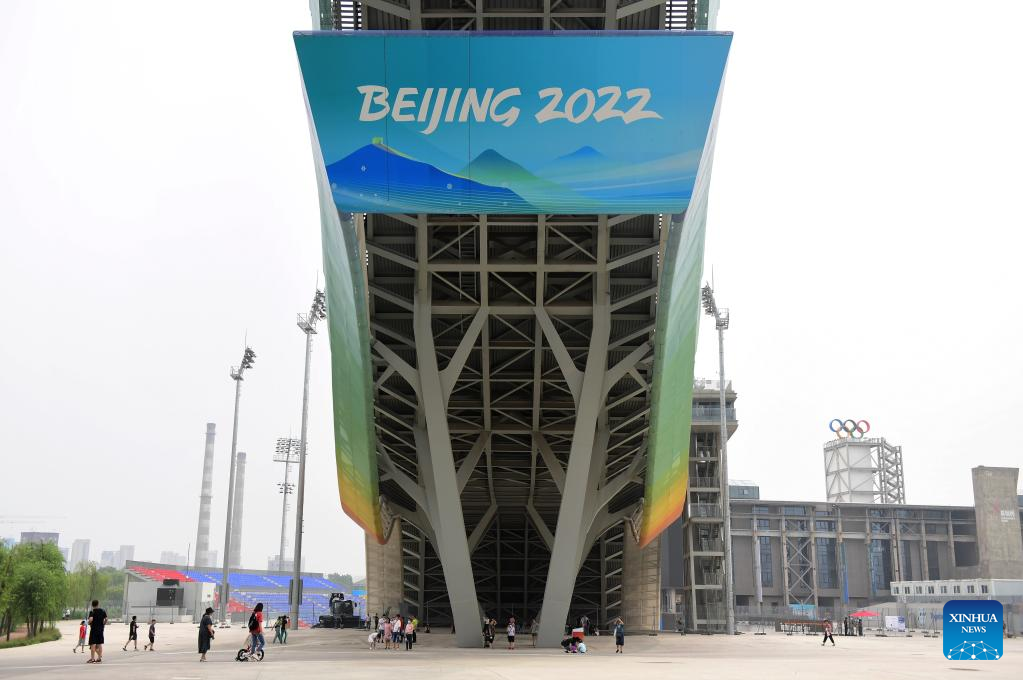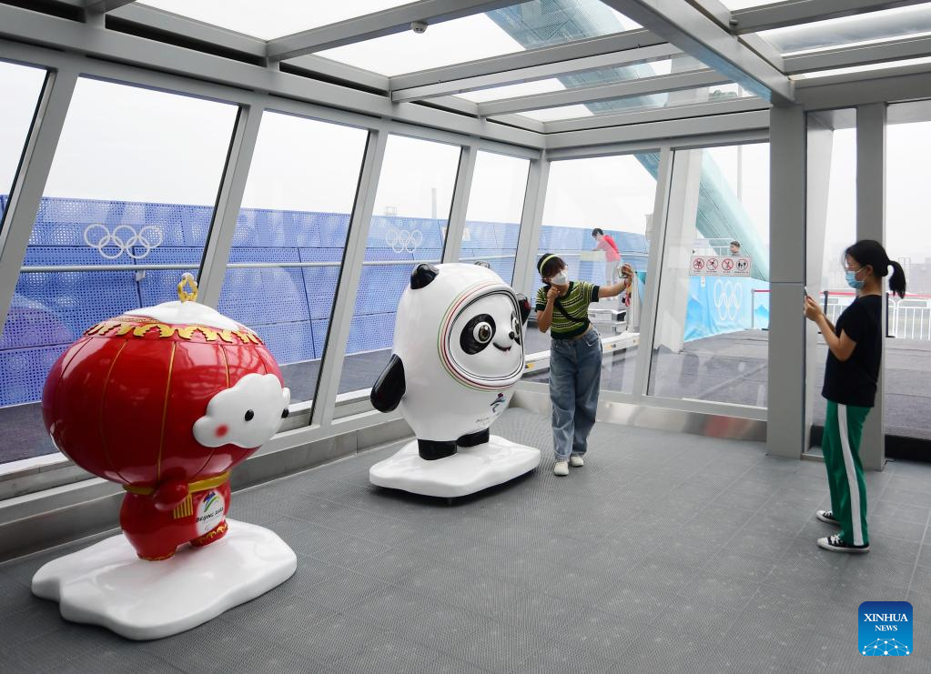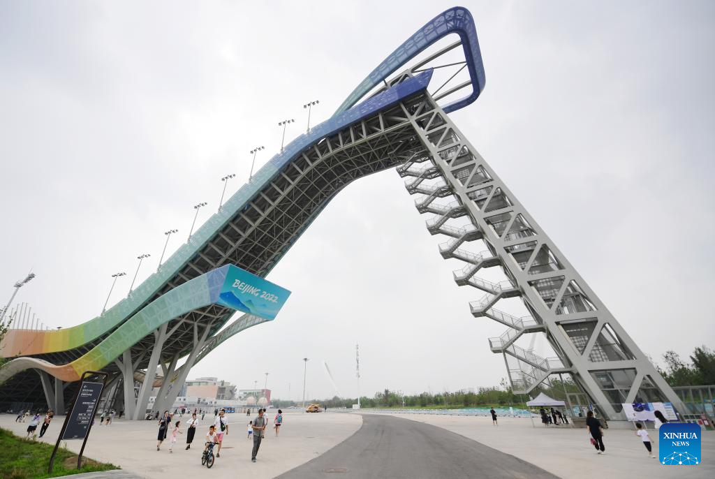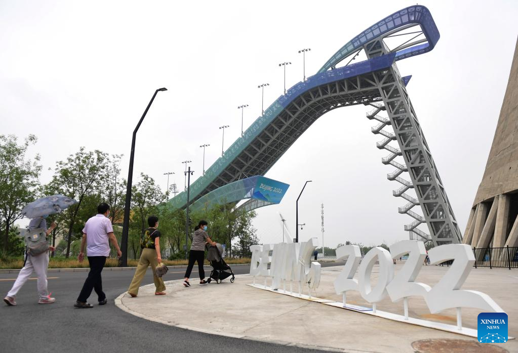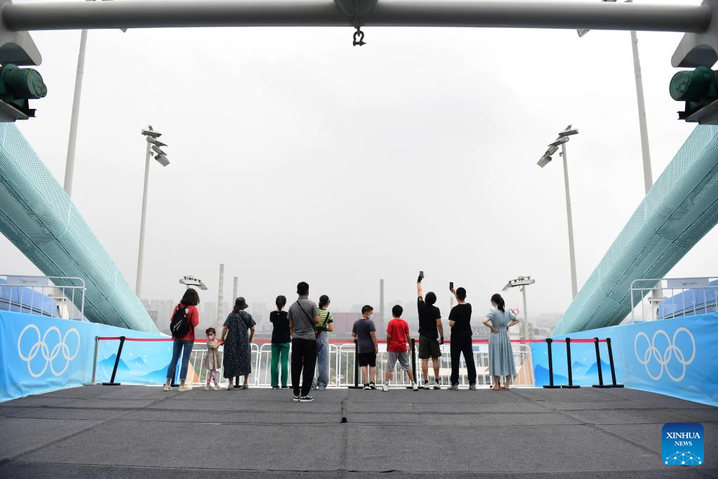 People visit the Big Air Shougang in Beijing, capital of China, July 2, 2022. The Big Air Shougang, a Beijing 2022 venue which was repurposed from a steel mill, reopened to visitors on Saturday. (Xinhua/Zhang Chenlin)