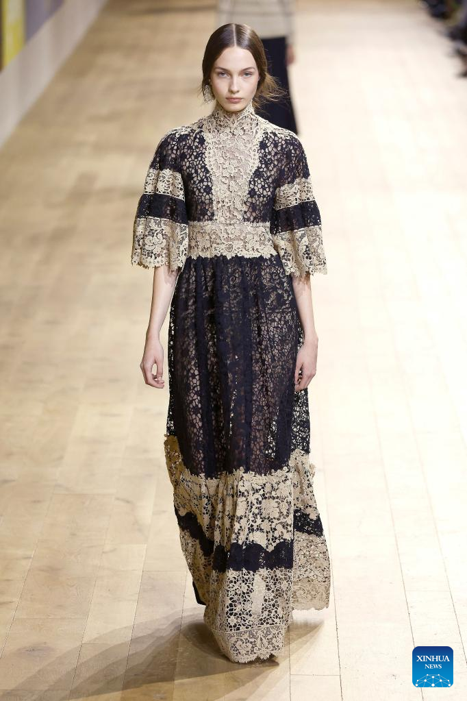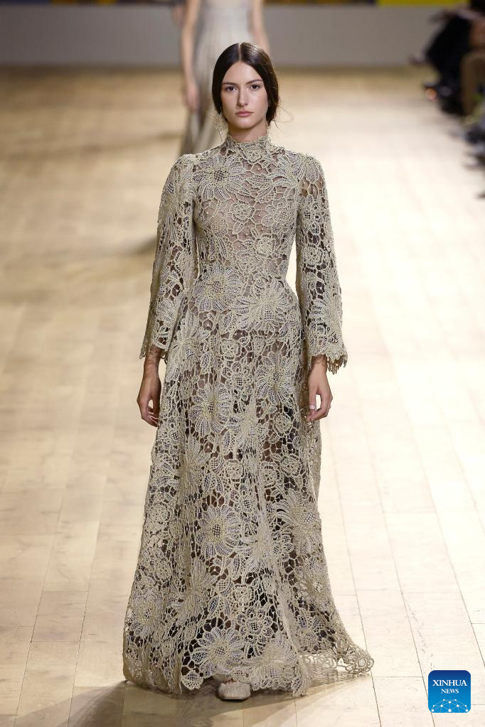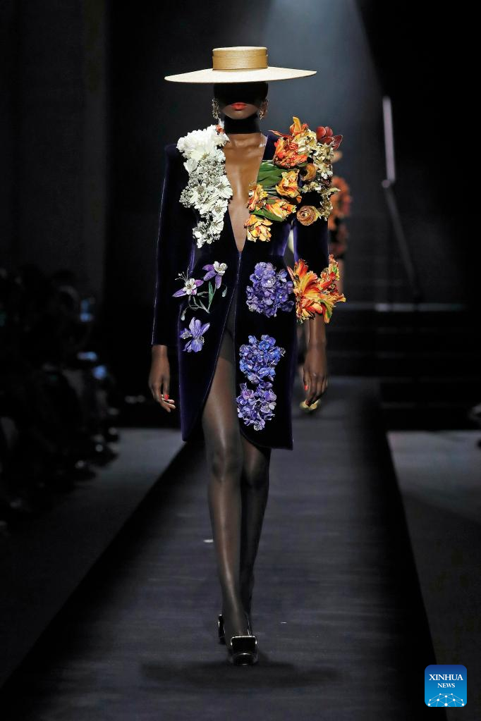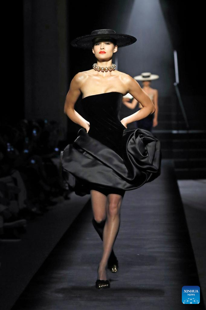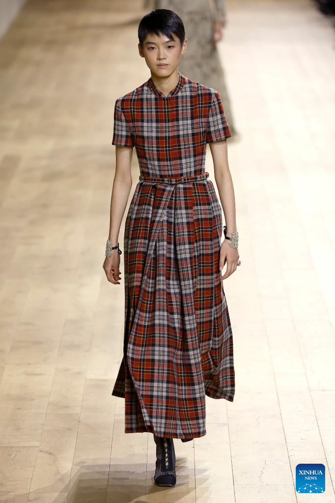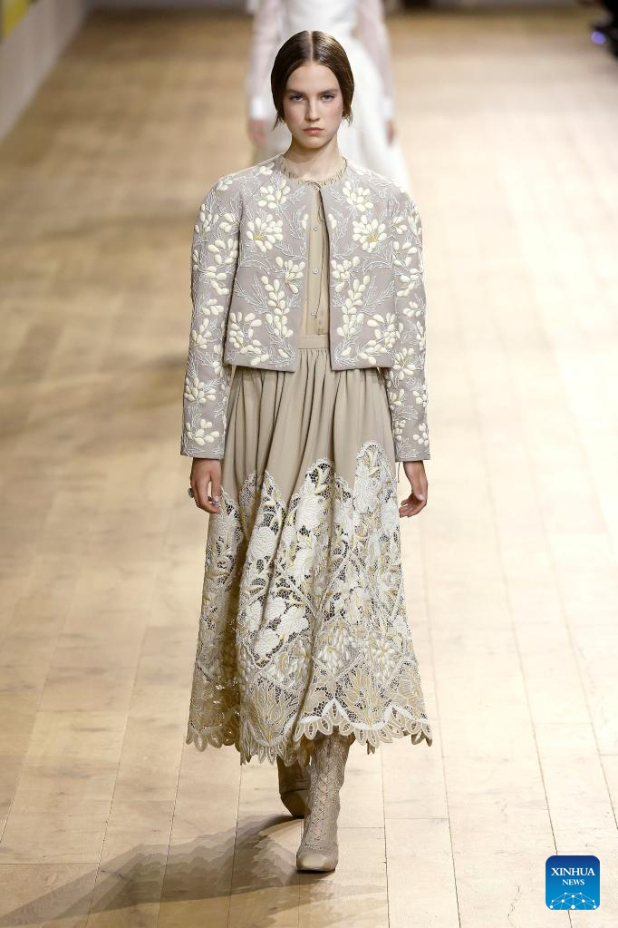 A model presents a creation from the Fall/Winter 2022-2023 Haute Couture collection of Christian Dior during the Paris Fashion Week in Paris, France, on July 4, 2022. (Photo by Piero Biasion/Xinhua)